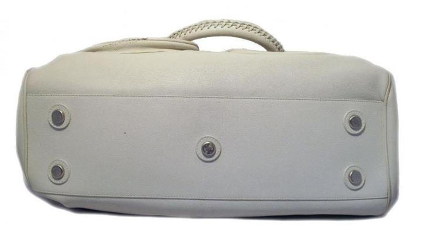CHRISTIAN DIOR White Leather Shoulder Shopper Bag