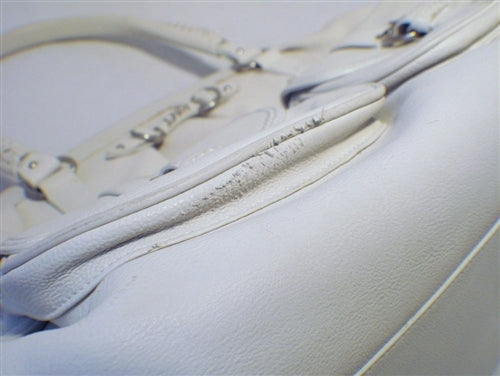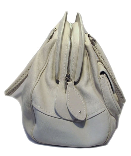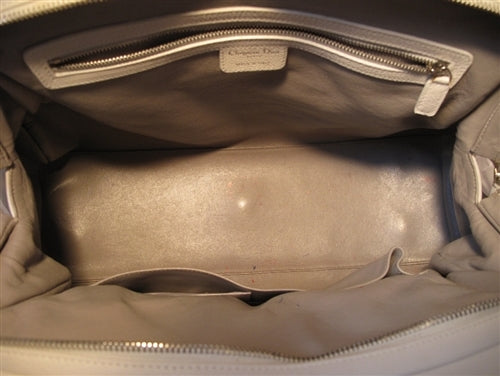 This stunning Christian Dior Shoulder Bag is in very good condition. The exterior features beautiful white leather trimmed with matte silver hardware. The double braided handles are not only extremely comfortable but also stylish. There are two front flap pockets with snap closures for ease of access to belongings you need immediate access to. There is one 2'' scuff along the bottom of the left front pocket (see photo). You cannot see it from the front and it does not deter from the overall fabulousness of this piece. The top zipper closure opens to a grey leather lined interior that holds 1 zippered pocket, 1 slit pocket, and 1 cell phone pocket to help keep your belongings organized. There are slight pen and make up marks throughout the interior (see photo). This is a limited edition piece from Dior that cannot be found anywhere else online. It's classic style will carry your wardrobe through any season and match any personal sense of style. Purchase includes a dust cover: Measurements: 17''x13''x7'' 7'' handle drop