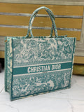 Christian Dior Women Bag High-Quality Denim Tote (Green/White)