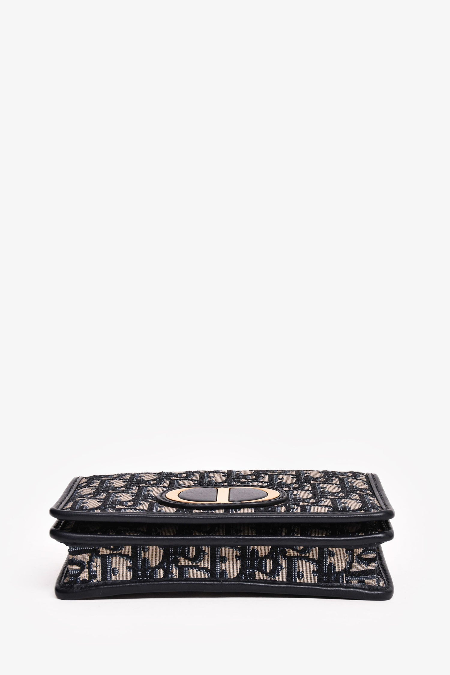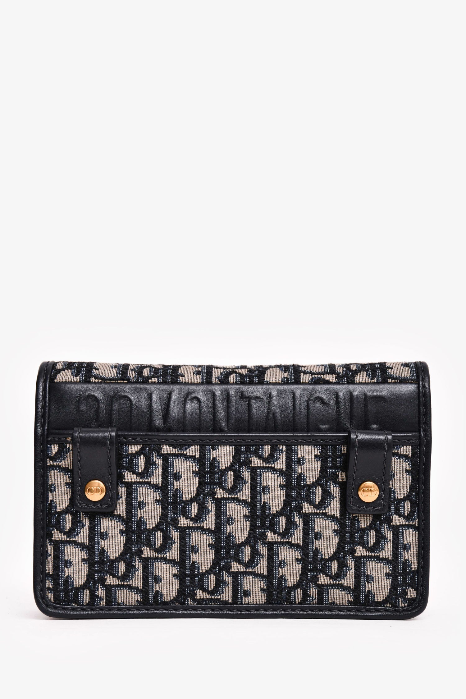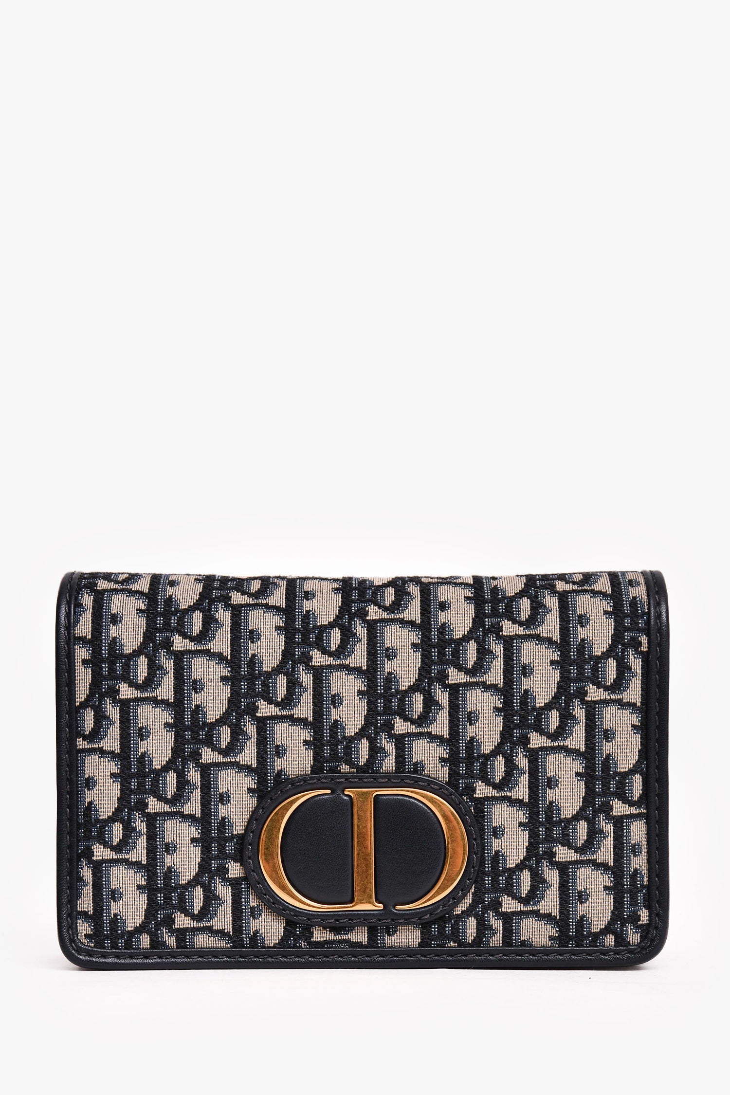 Christian Dior 2020 Navy Leather Oblique 2 In 1 30 Montage Belt/Shoulder Bag. Top snap-on button closure. Gold-tone hardware. Four card compartments. One zipper compartment. Tonal stitching.