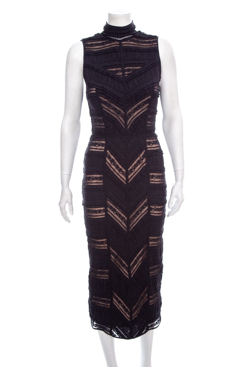 Cinq A Sept Black Fully Lace Midi Dress with High Neckline. This item is new with tags.