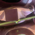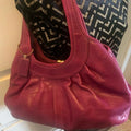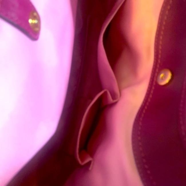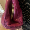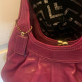 The bag is an XL Ergo style satchel or tote style shoulder purse by Coach that is very lightly used! It can be a shoulder or handheld style and is made in a supple deep magenta purple colored leather with a waxy sheen. The purse has two wide leather straps and an open top! The hardware is brushed antique gold.