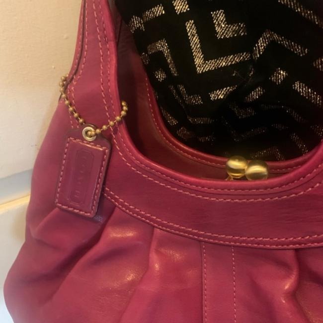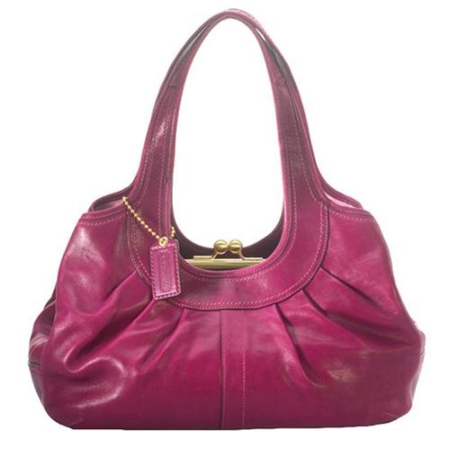 Coach Pursesdesigner Purses Magentabrushed Ant Gold Leather Tote