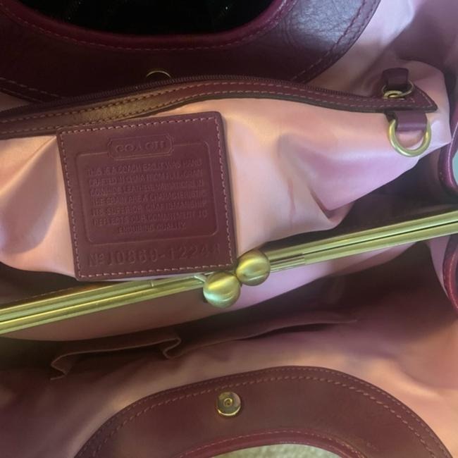 The purse has such a smart layout and is very roomy on the inside! There are three compartments- the center one has a large kiss closure and the ones on either side of it have magnetic snap tops, multiple interior zip and slot pockets. The lining is a silky pink fabric that is very clean. It has the Coach 'Creed' and the No. embossed on a leather tag. It has a classic look in a RARE color that will never go out of style. It'd be a fantastic addition to any collection! This bag was definitely made by a high end designer and is a signature style! It is in great condition and has been very lightly used- don't miss out!