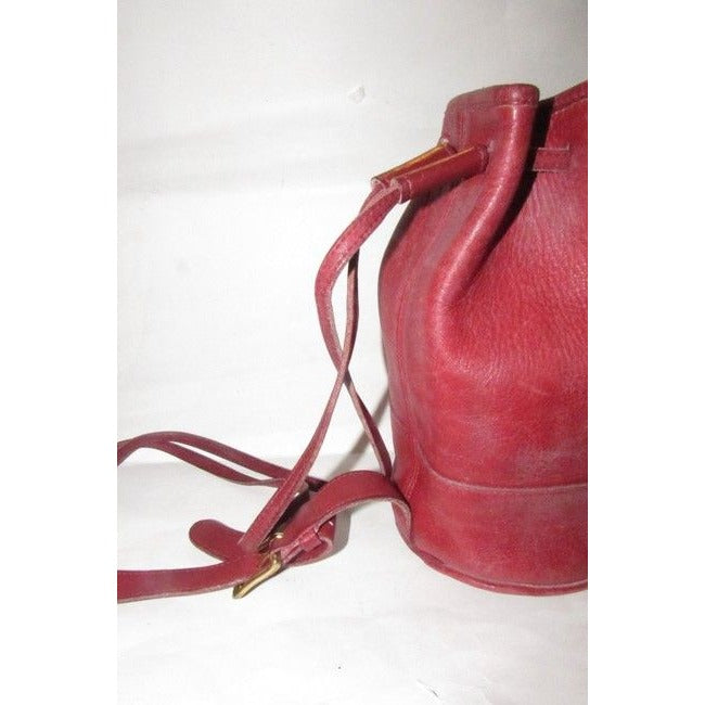 vintage, Coach, 'Bixby', large, drawstring top, bucket shaped, satchel style, sling style shoulder bag or backpack in buttery soft red leather with brass accents