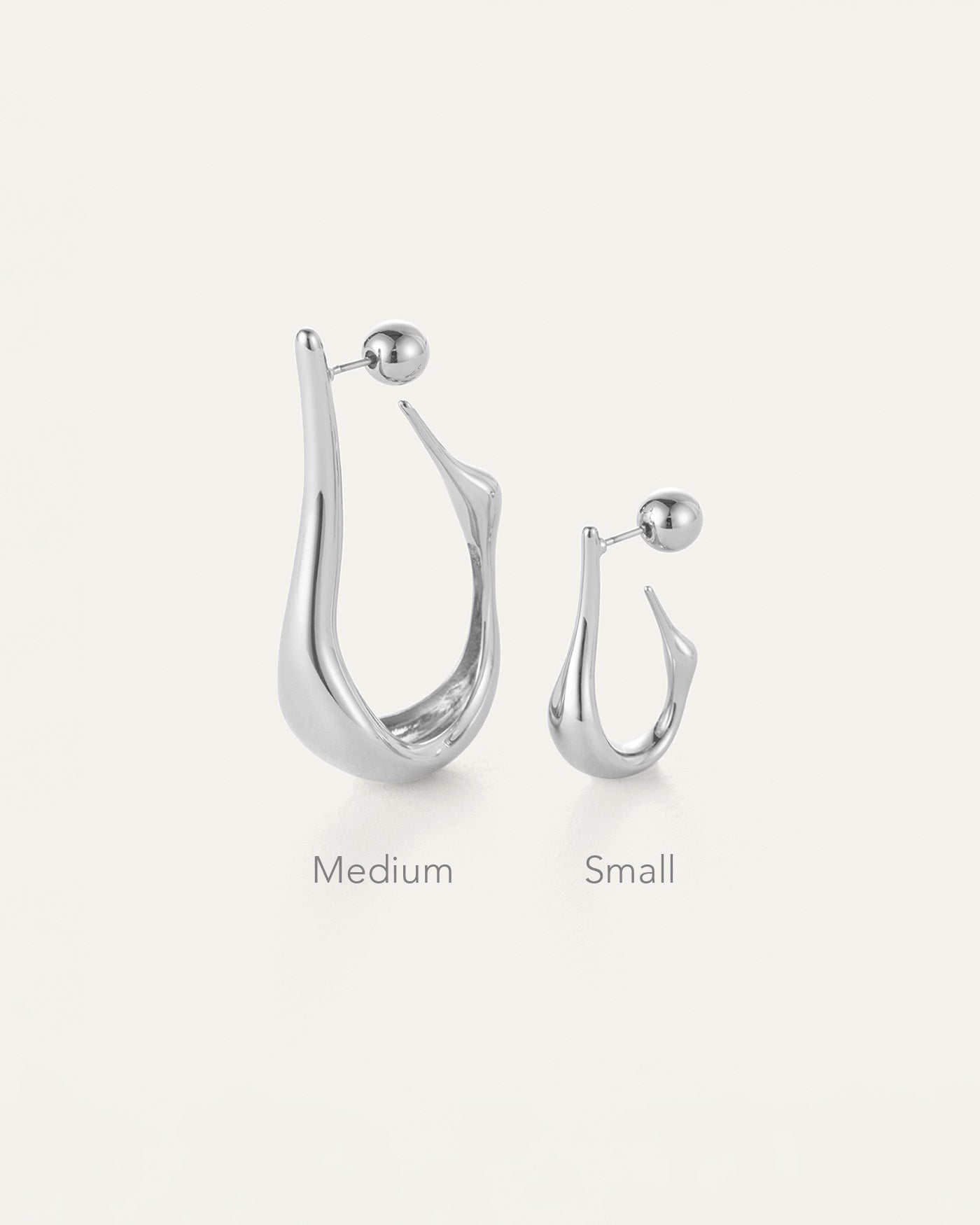 The theatrical beauty of an egret bird is captured in this pair of elevated, medium hoop earrings. Finished in high-polish silver.