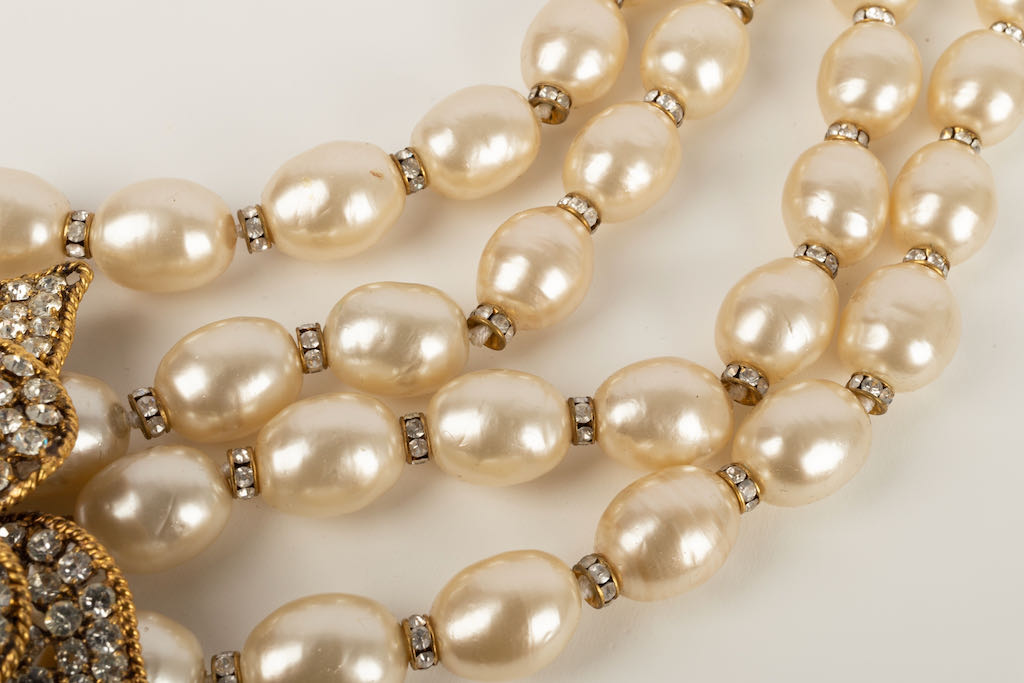 Note: Our Items are totally New High quality Brand Inspired Refurbished. Please make sure you are well aware of it before buying any of the Item. T&C's Apply in case of refunds.Please send us message on below chat to confirm availability. We will send the Refurbished Model in case you place an order with us. Enjoy Shopping.Always Send Us message to confirm availability before buying, In case of refund the transaction fee remains non refundable.�Thank�you. Collier deux rangs de perles nacr�es et rondelles de strass retenant une fleur en m�tal dor� pav�e de strass.