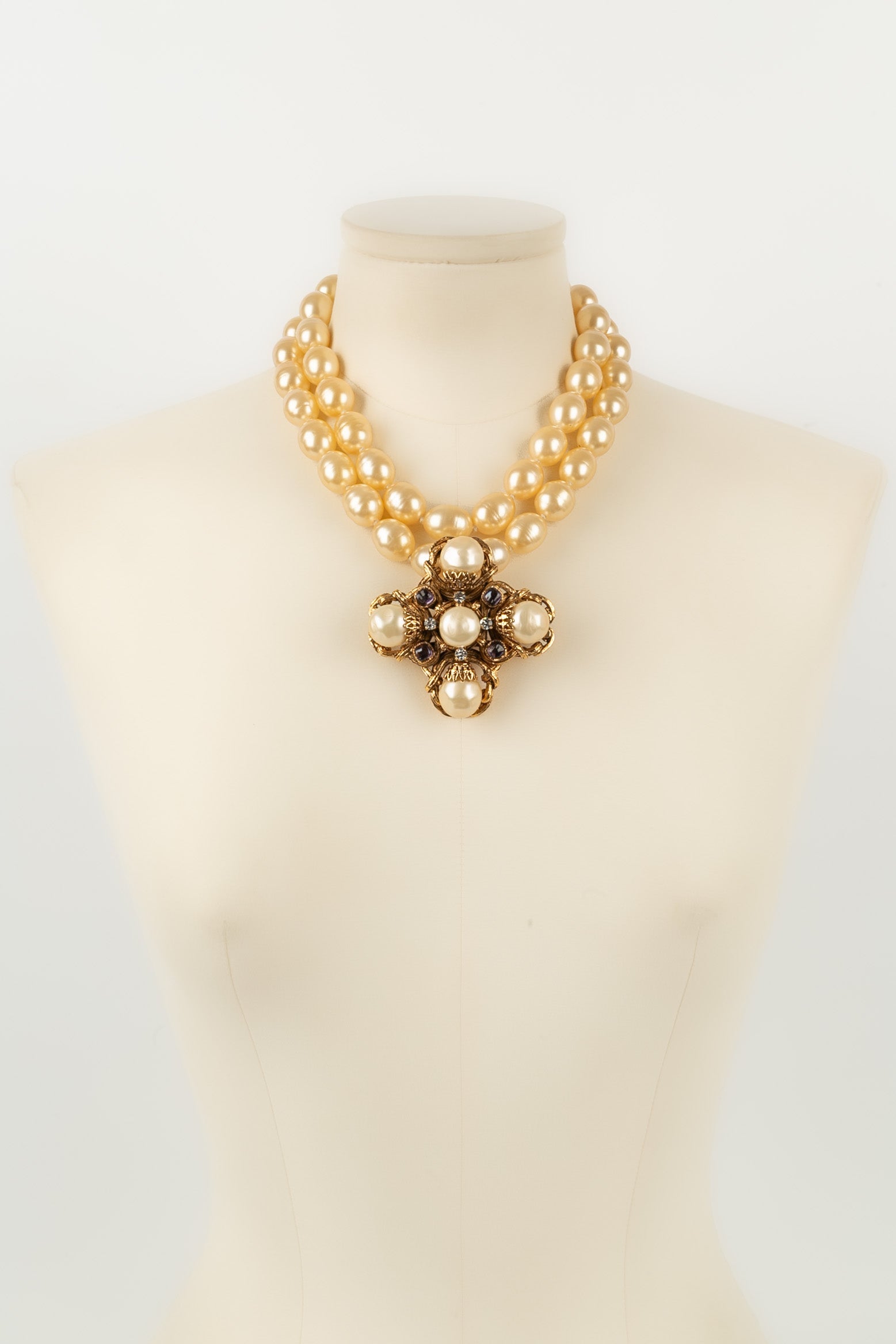 Note: Our Items are totally New High quality Brand Inspired Refurbished. Please make sure you are well aware of it before buying any of the Item. T&C's Apply in case of refunds.Please send us message on below chat to confirm availability. We will send the Refurbished Model in case you place an order with us. Enjoy Shopping.Always Send Us message to confirm availability before buying, In case of refund the transaction fee remains non refundable.�Thank�you. Collier court compos� de deux rang�es de perles nacr�es mont�es � noeuds et d'un pendentif en m�tal dor�, p�te de verre et strass. Collection 2CC8.