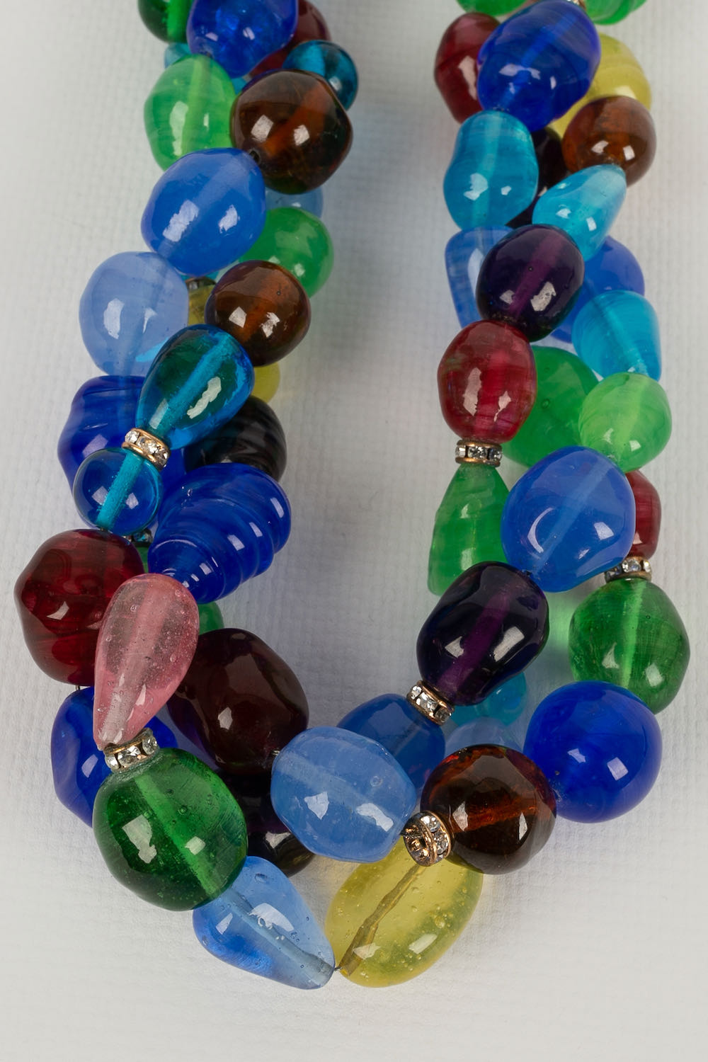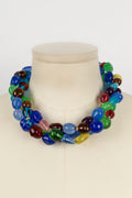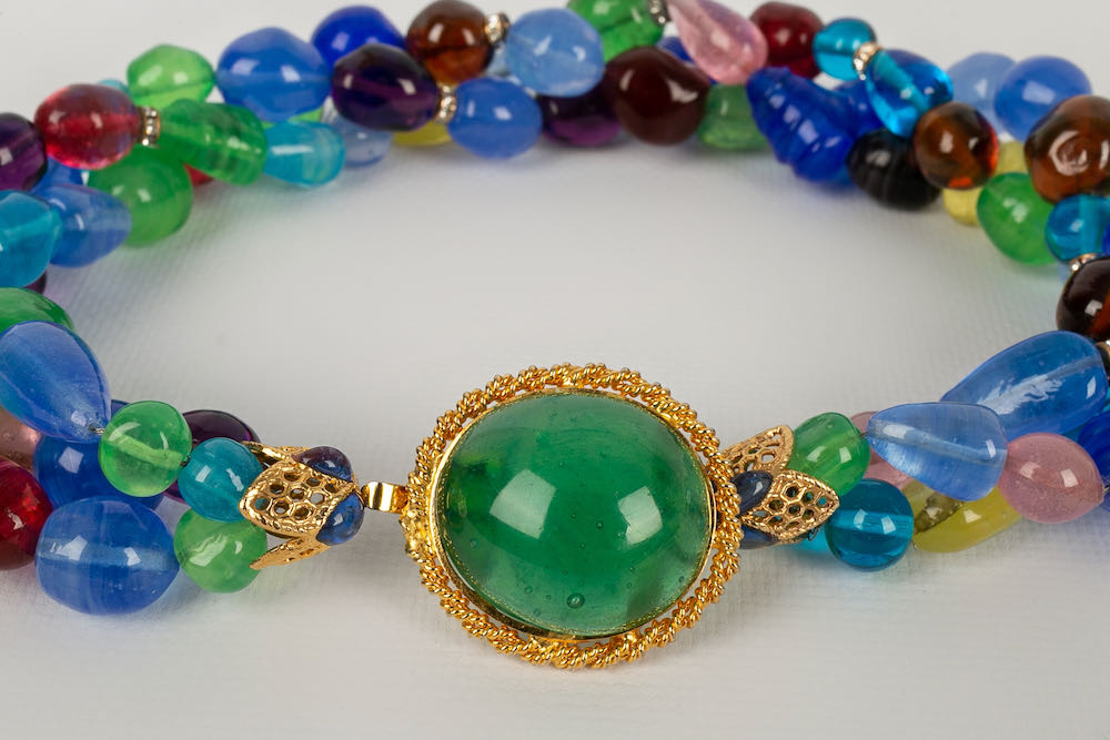 CHANEL -Collier court en p�te de verre multicolore et rondelles de strass. Mod�le datant des ann�es 1950.