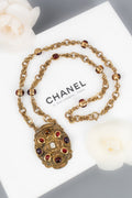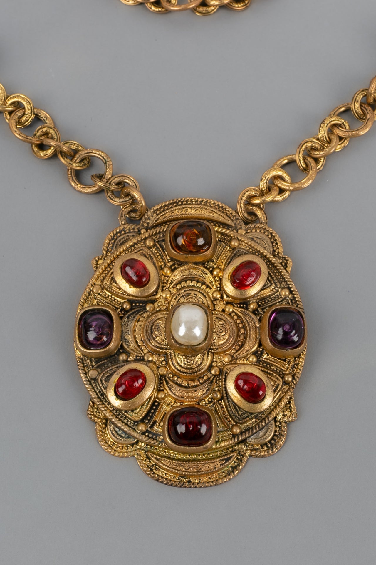 CHANEL - Collier byzantin en m�tal dor� et p�te de verre. Collection 1984.