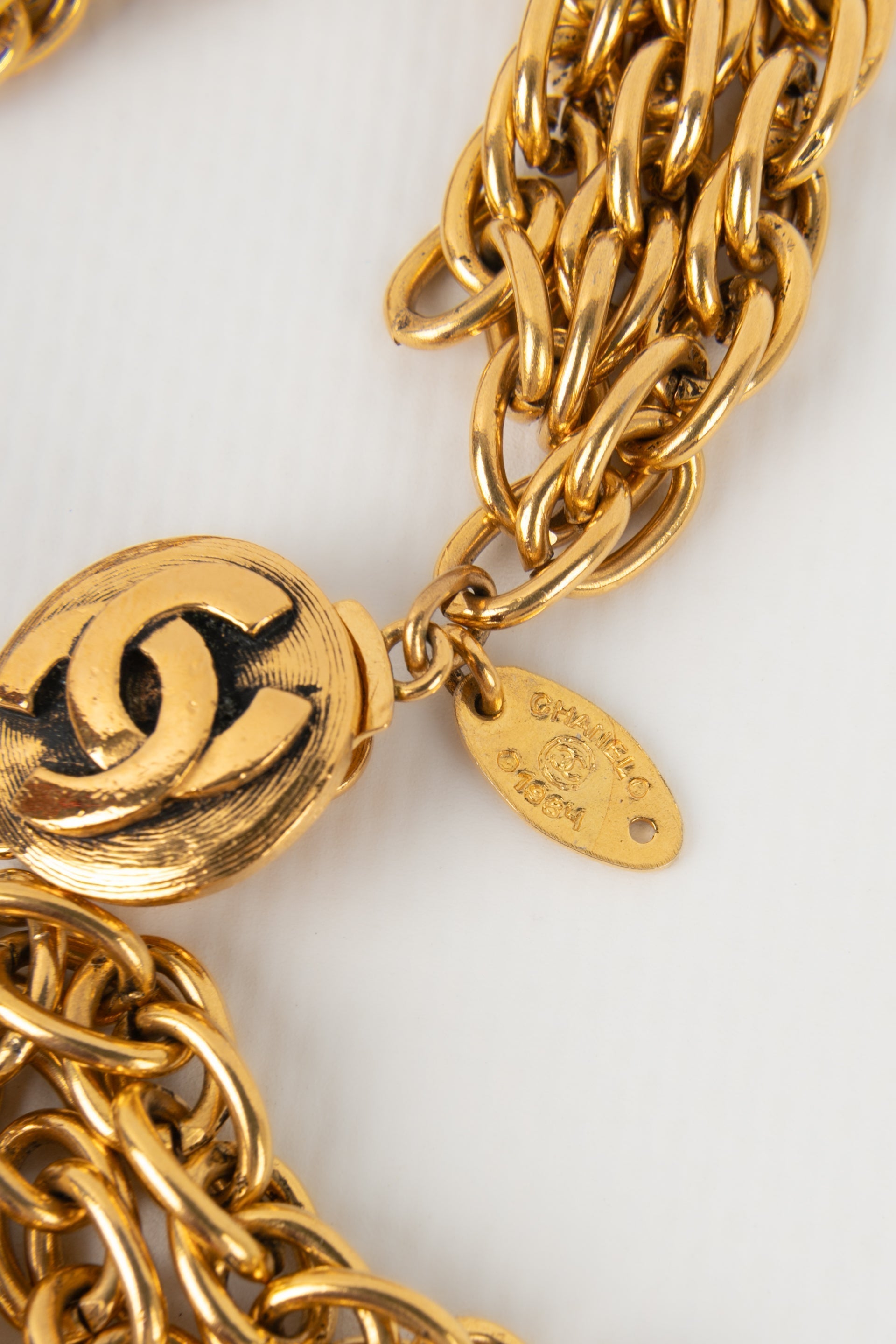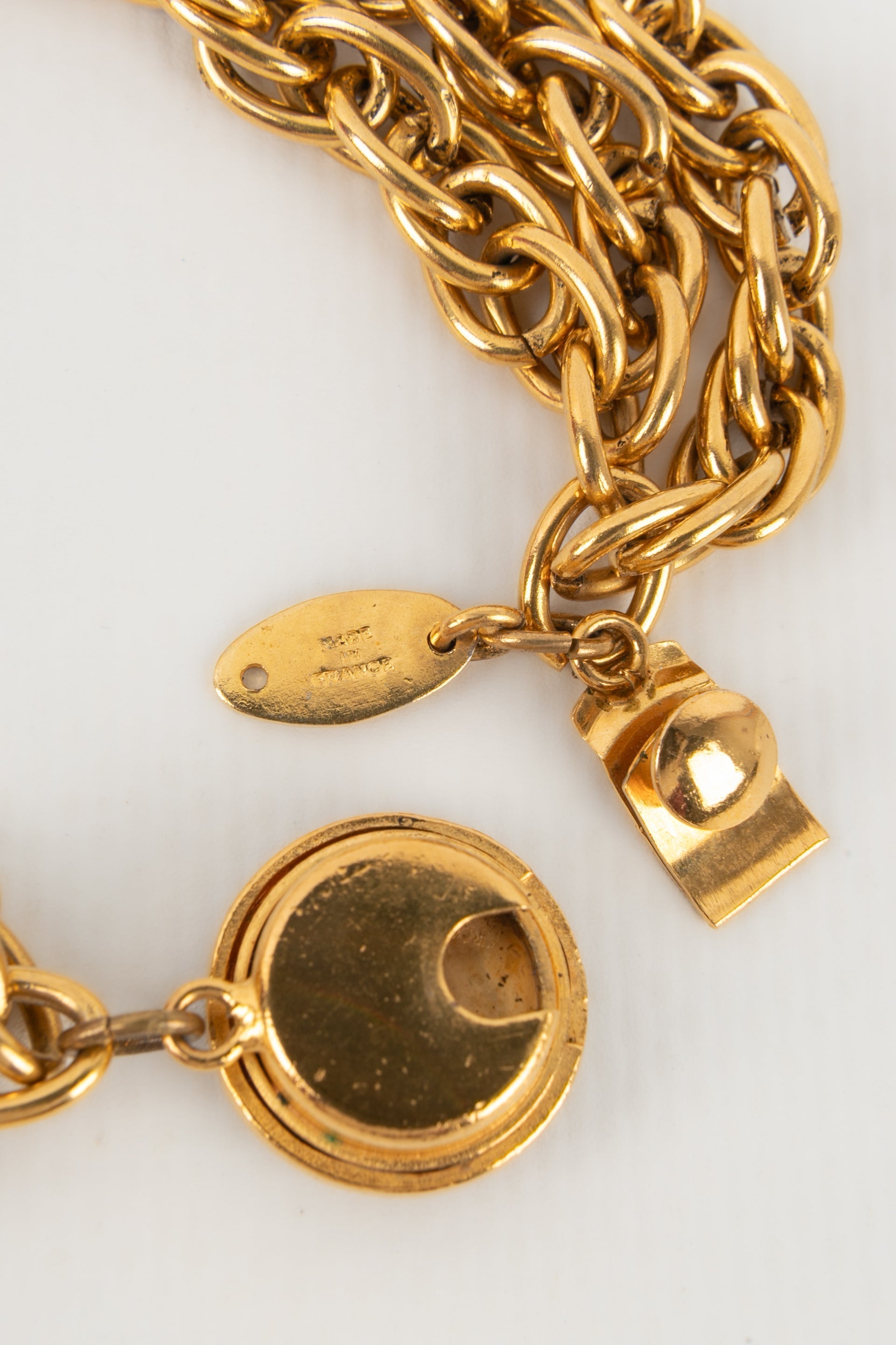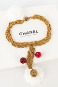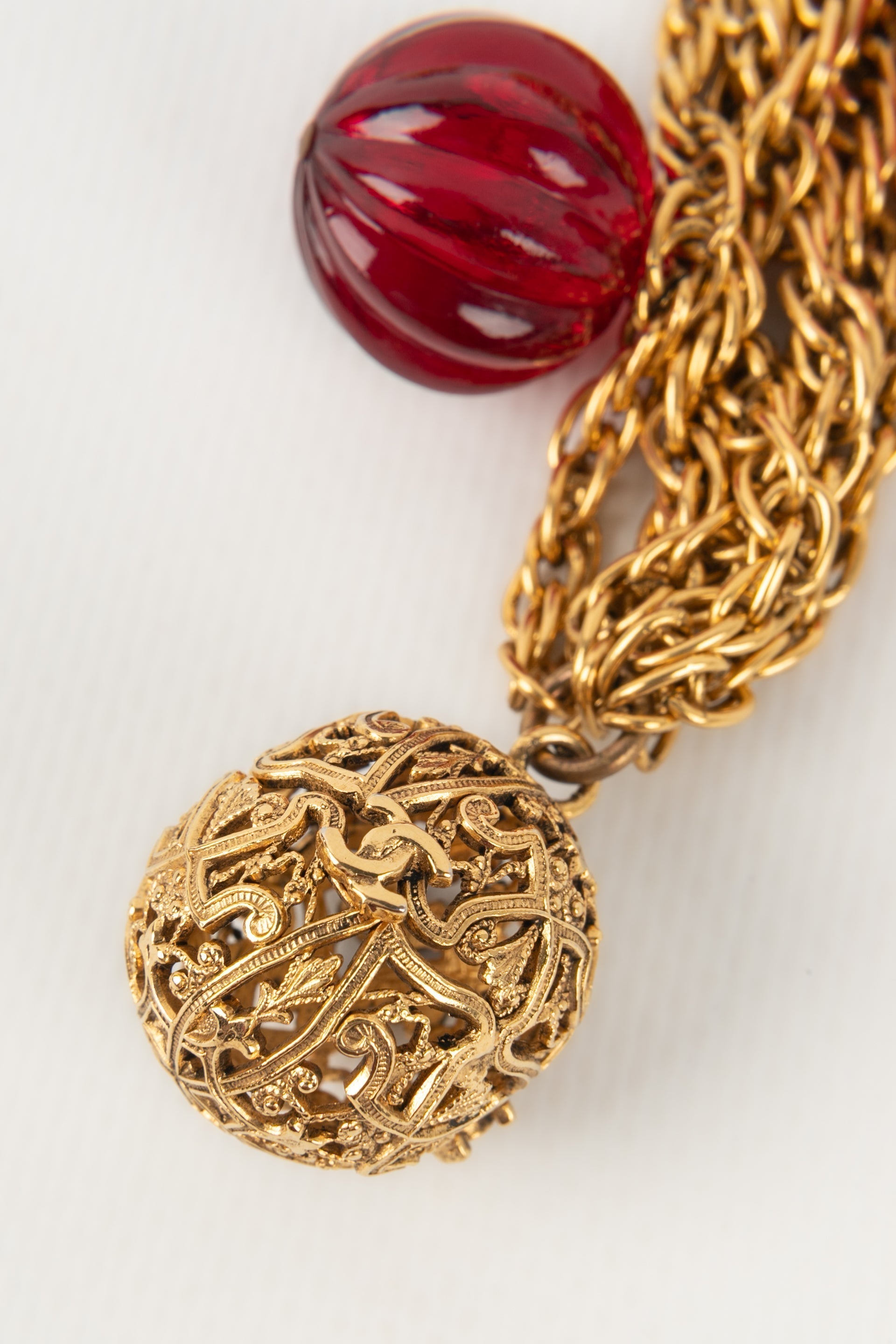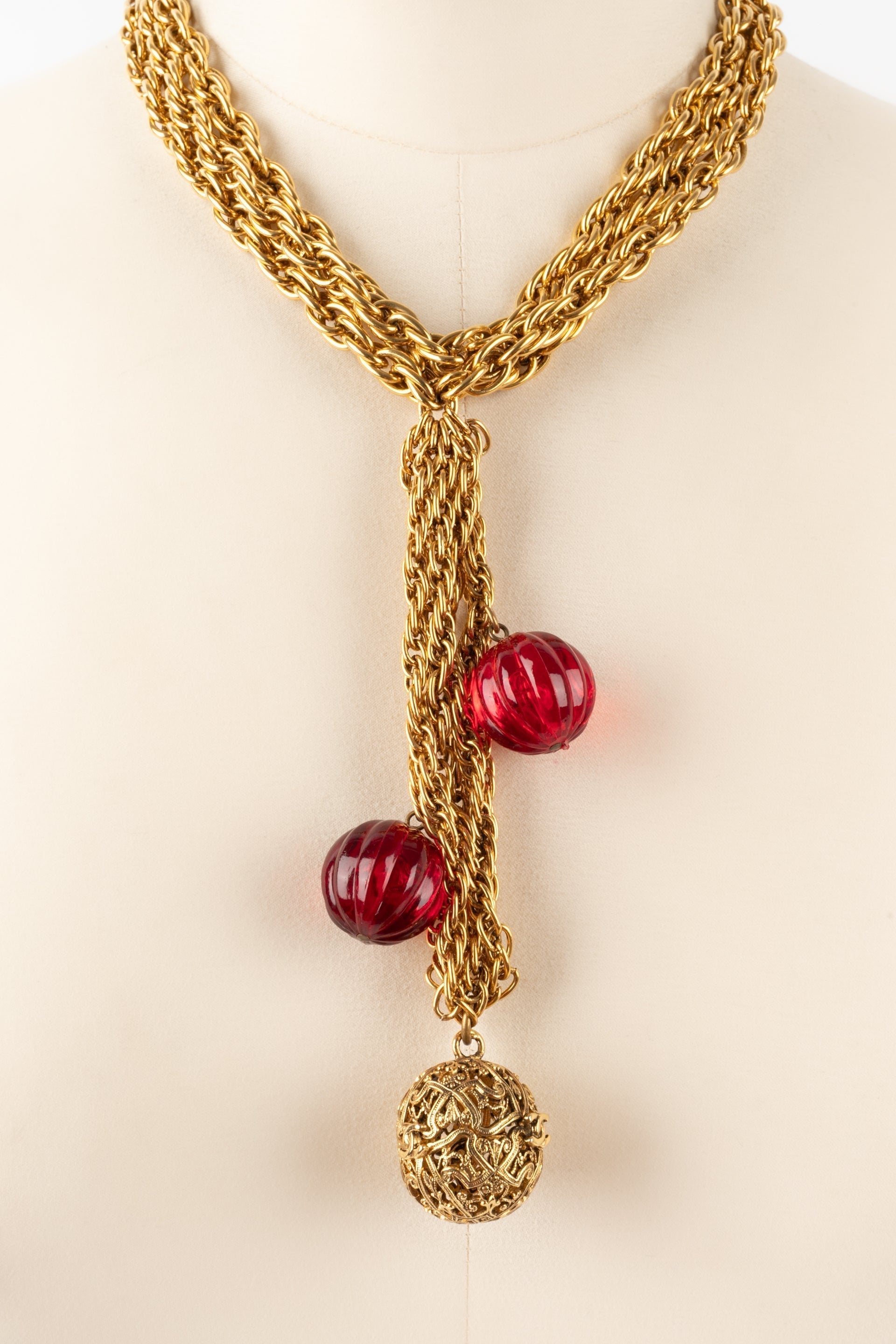 CHANEL - (Made in France) Collier en métal doré et perles rouges. Collection 1984.