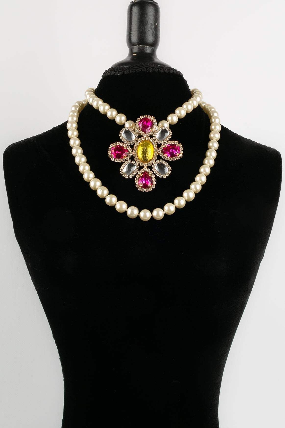 Note: Our Items are totally New High quality Brand Inspired Refurbished. Please make sure you are well aware of it before buying any of the Item. T&C's Apply in case of refunds.Please send us message on below chat to confirm availability. We will send the Refurbished Model in case you place an order with us. Enjoy Shopping.Always Send Us message to confirm availability before buying, In case of refund the transaction fee remains non refundable.�Thank�you. Collier de perles agr�ment� d'une broche pendentif en m�tal dor� et strass fantaisies. Collection Printemps/�t� 1995.