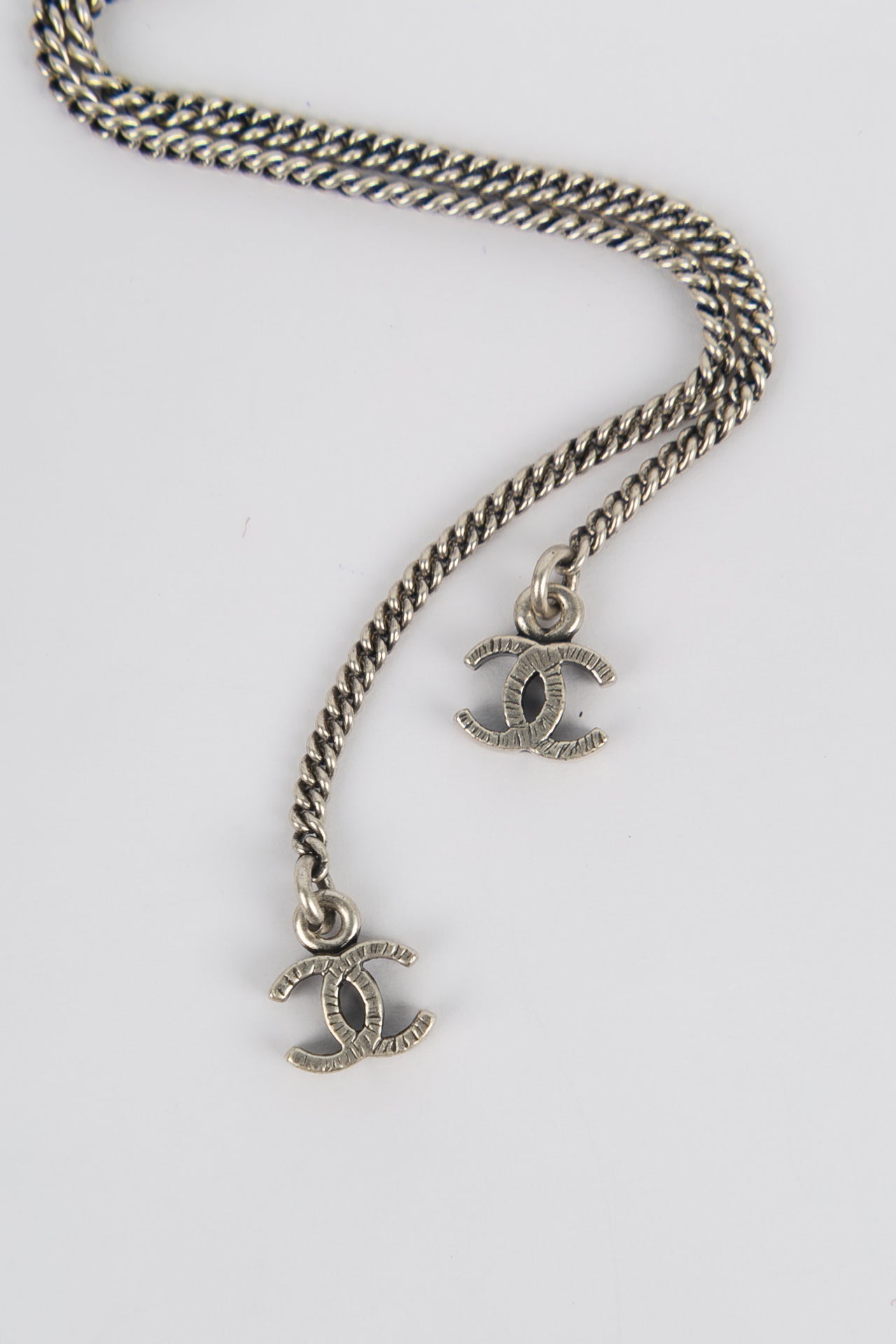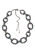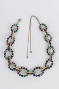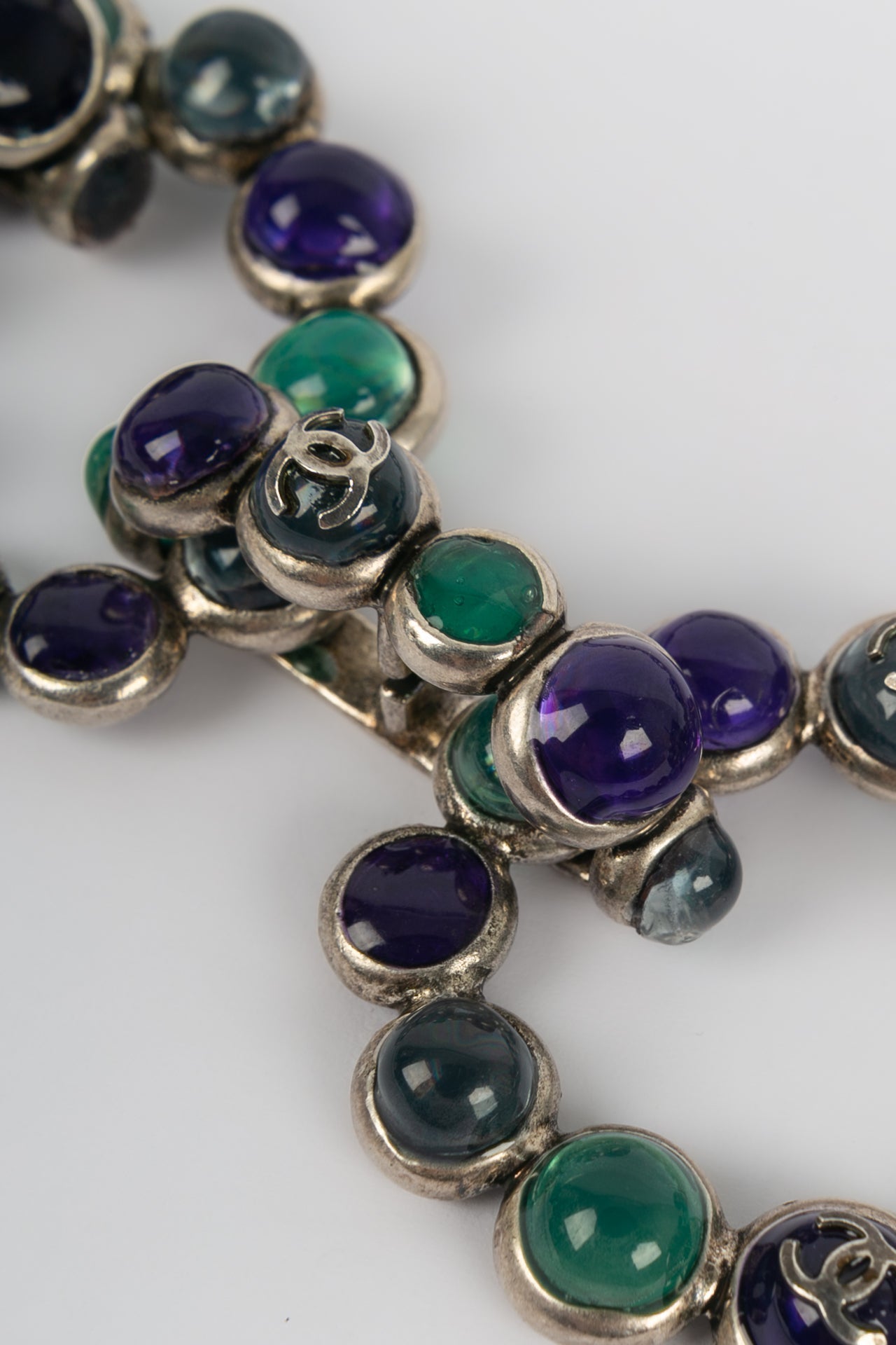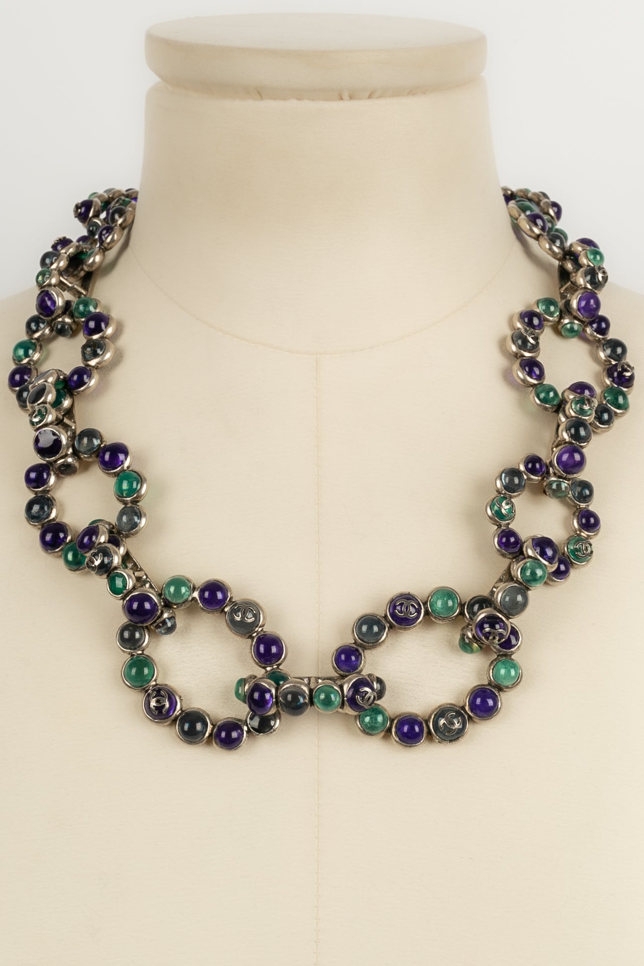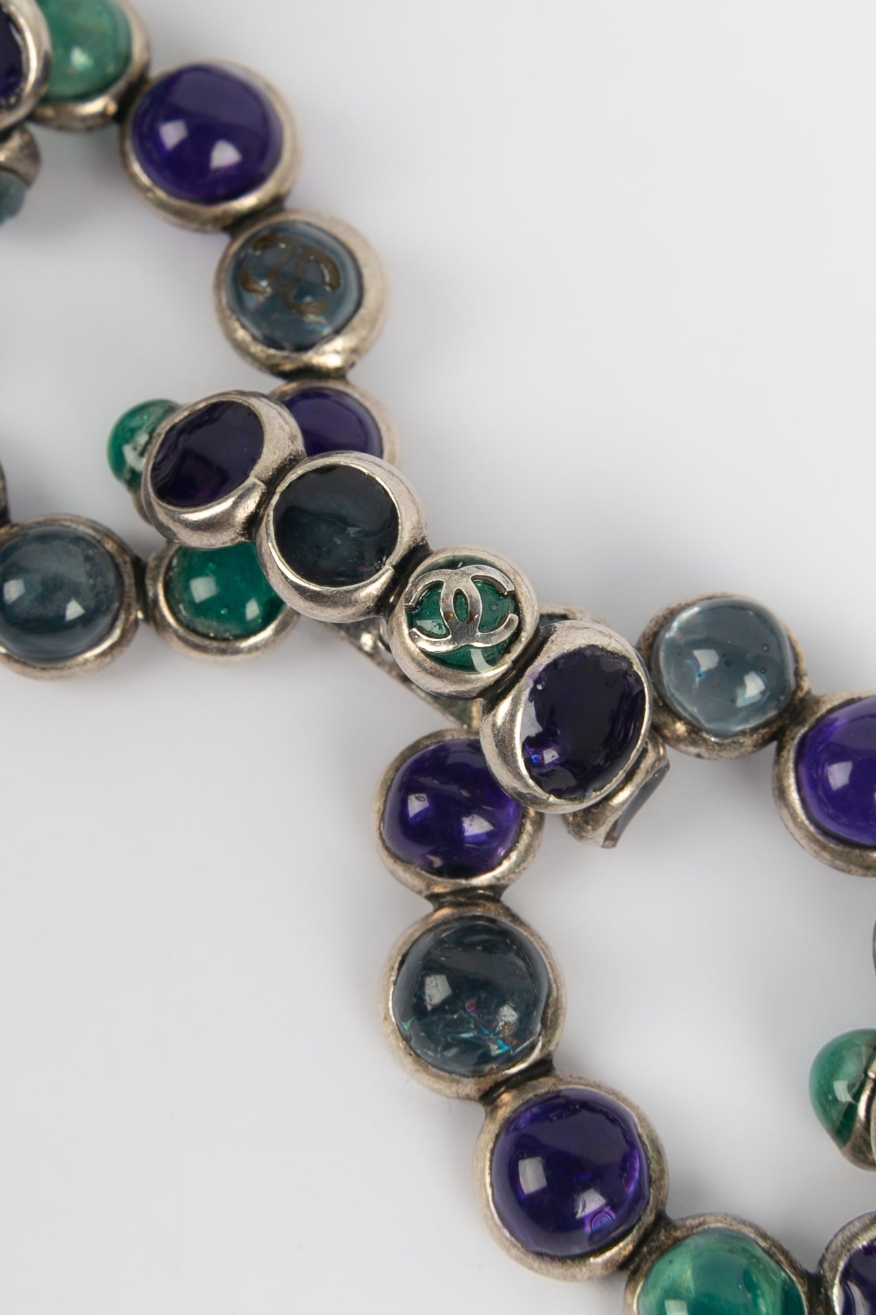 CHANEL -Collier en m�tal argent� et r�sine dans les tons de bleu et verre. Mod�le de d�fil�, non sign�, issu des ventes priv�es. Collection Resort 2011.