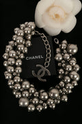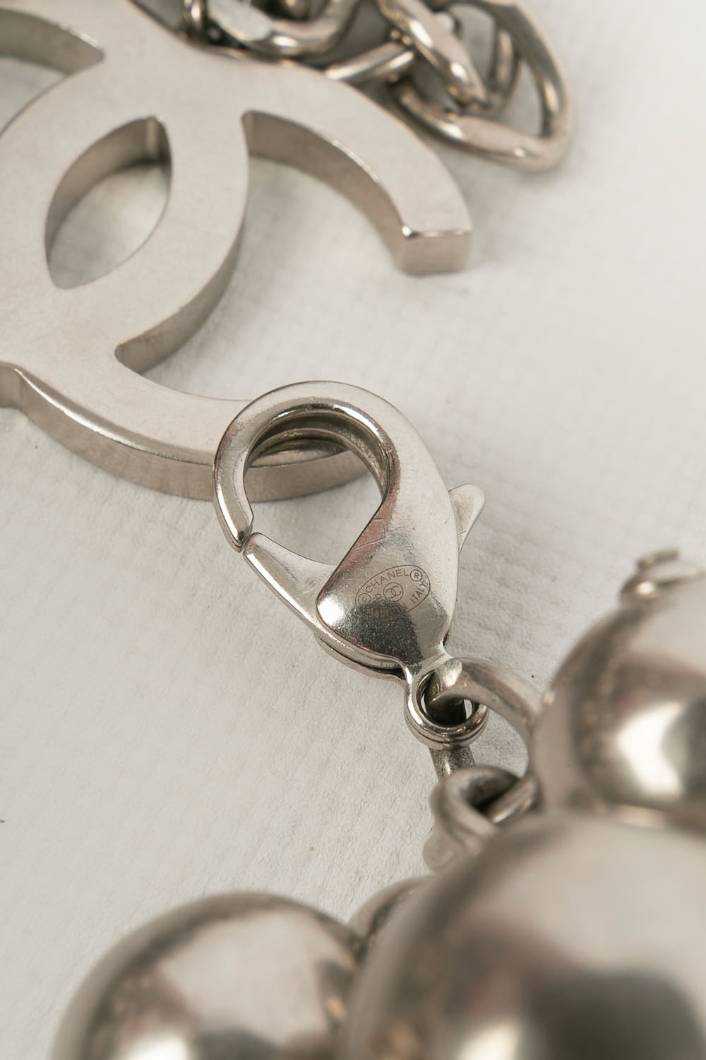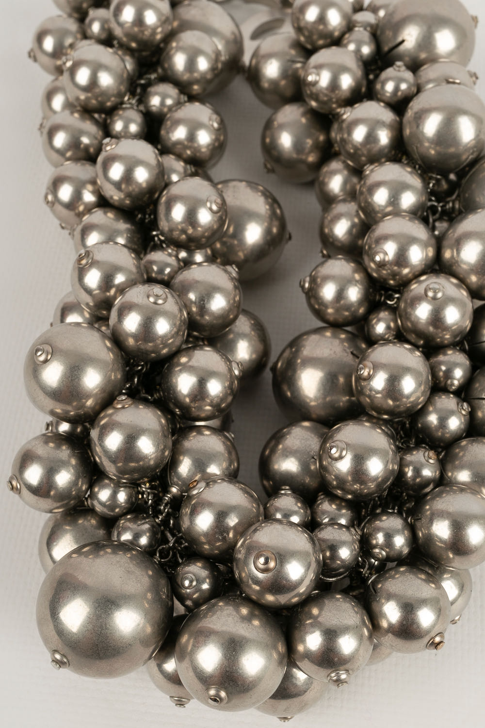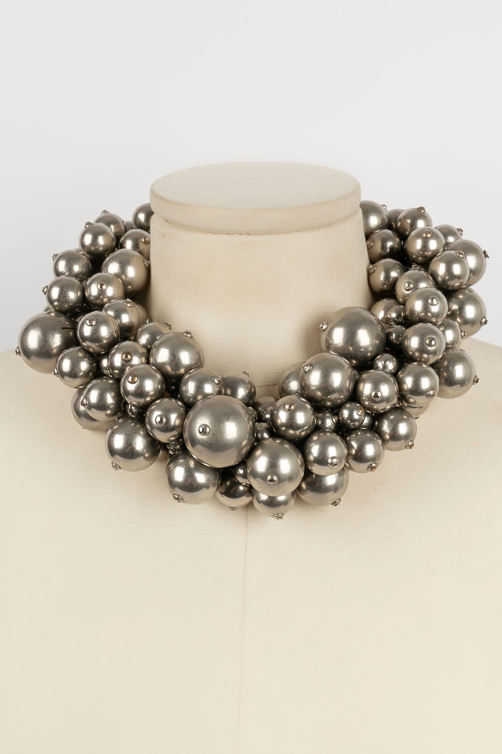 CHANEL -(Made in Italy) Collier court compos� de sph�res en m�tal argent�. Collection �t� 2013.