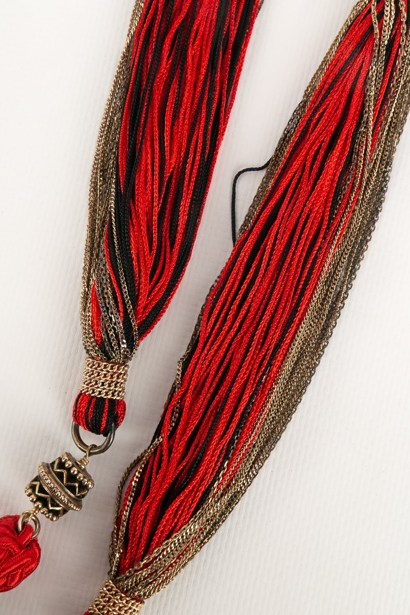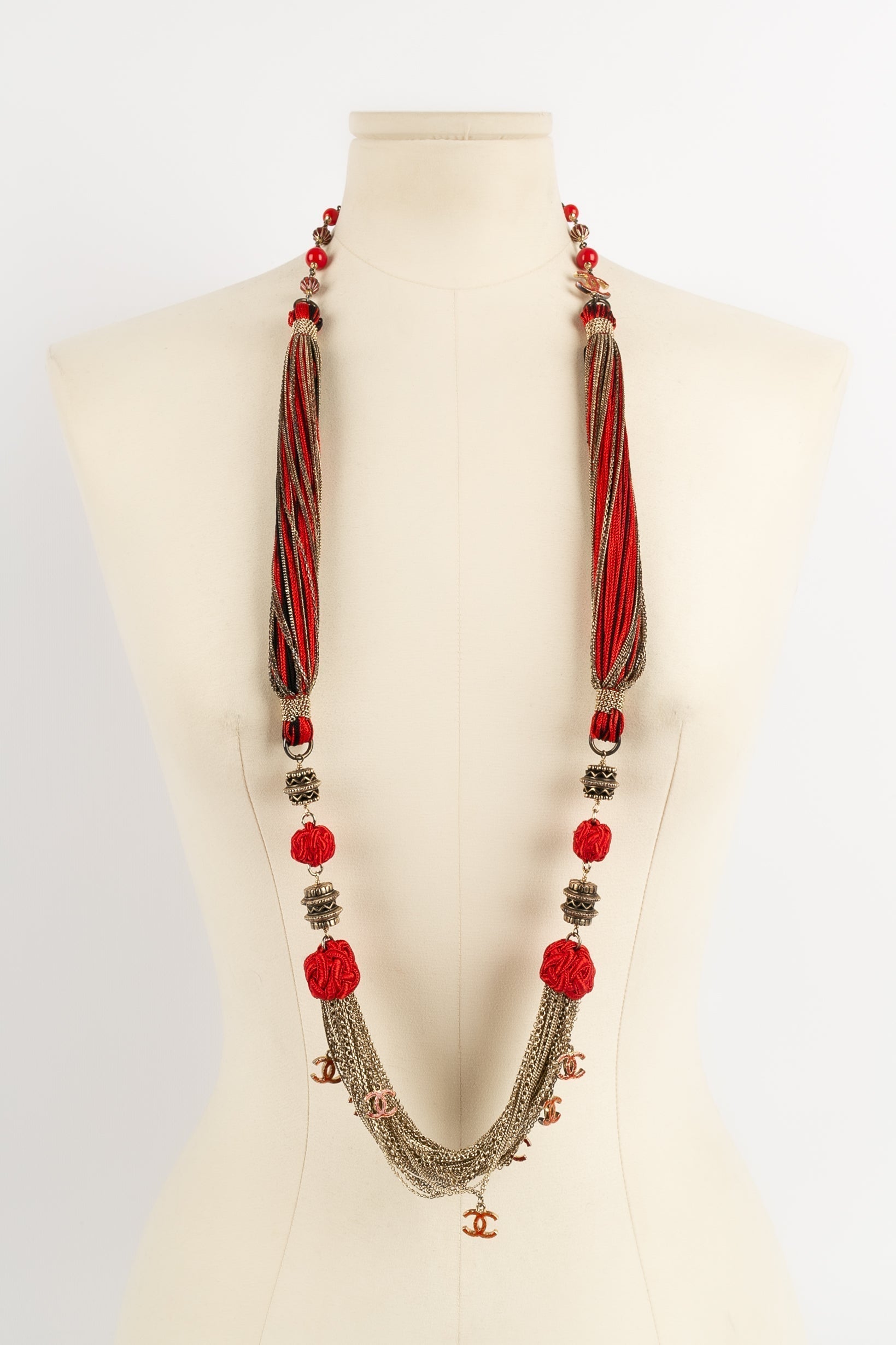 Note: Our Items are totally New High quality Brand Inspired Refurbished. Please make sure you are well aware of it before buying any of the Item. T&C's Apply in case of refunds.Please send us message on below chat to confirm availability. We will send the Refurbished Model in case you place an order with us. Enjoy Shopping.Always Send Us message to confirm availability before buying, In case of refund the transaction fee remains non refundable.�Thank�you. Collier long en m�tal dor� et passementerie noire et rouge. Collection Pre-Fall 2010.