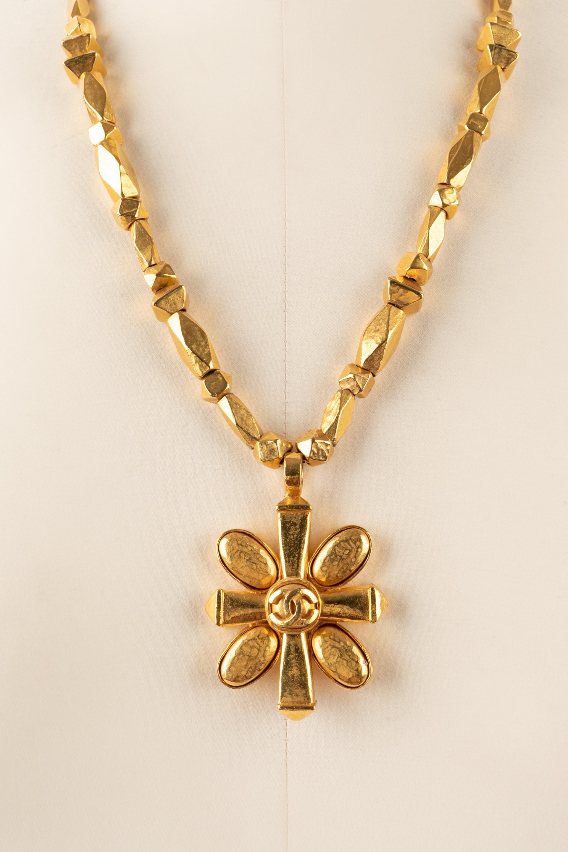 CHANEL - (Made in France) Collier long en métal doré et son pendentif croix. Collection Automne-Hiver 1997.