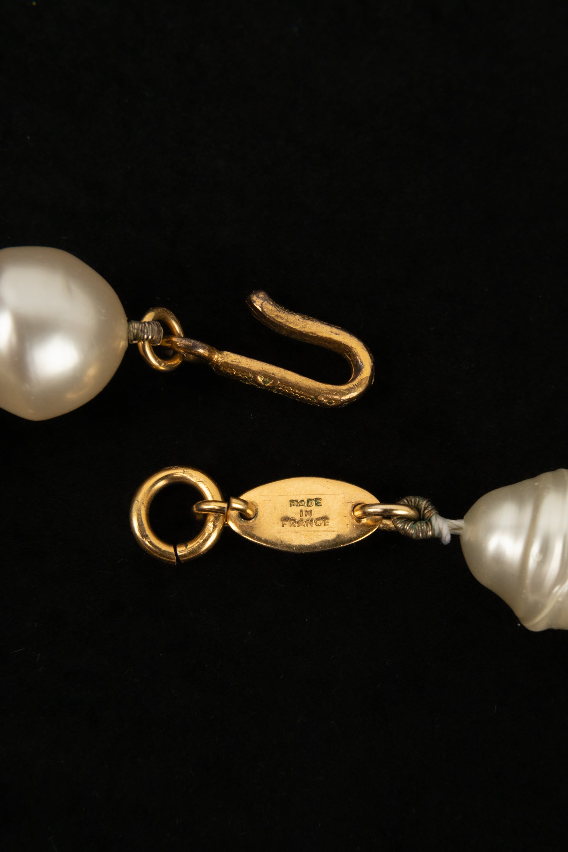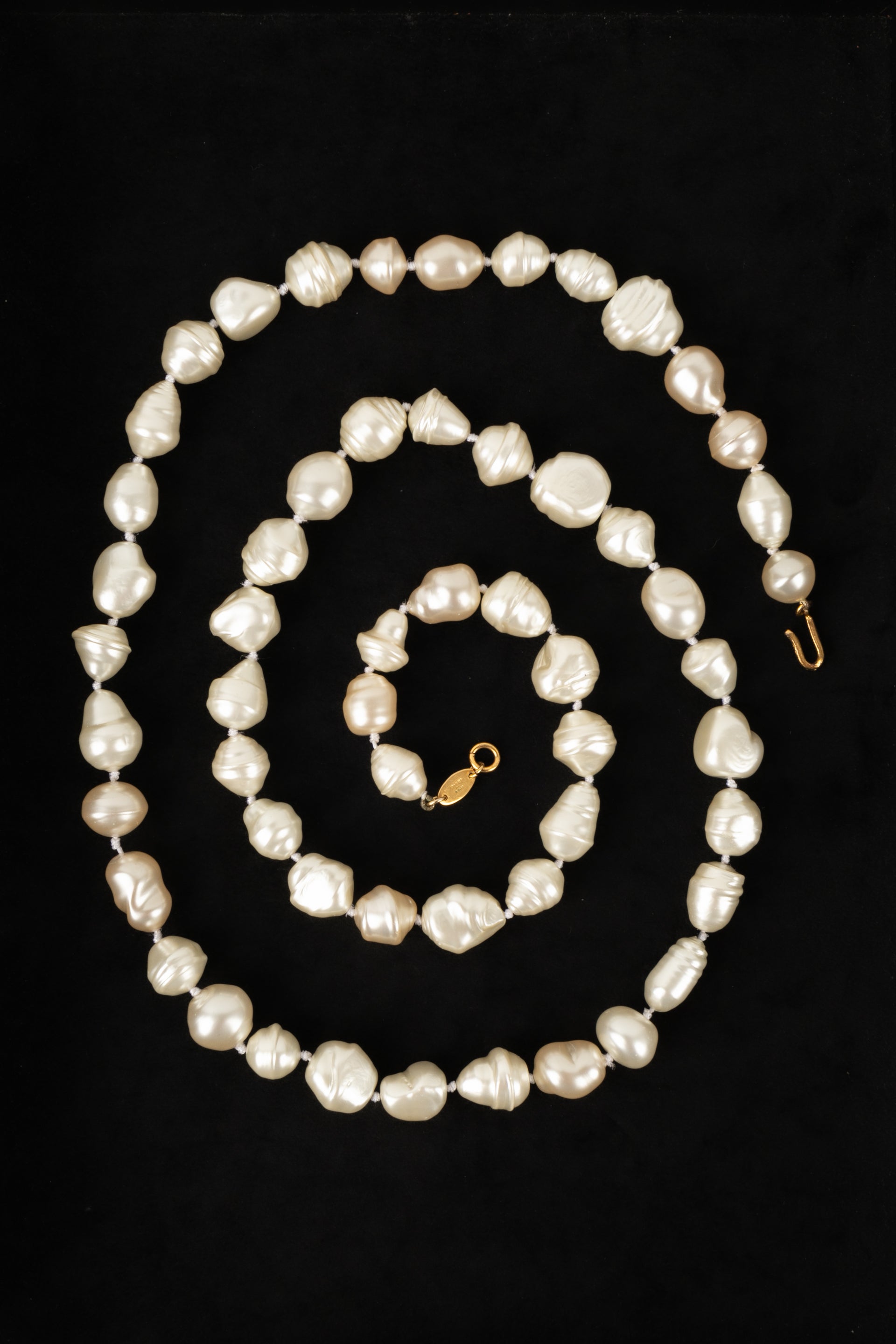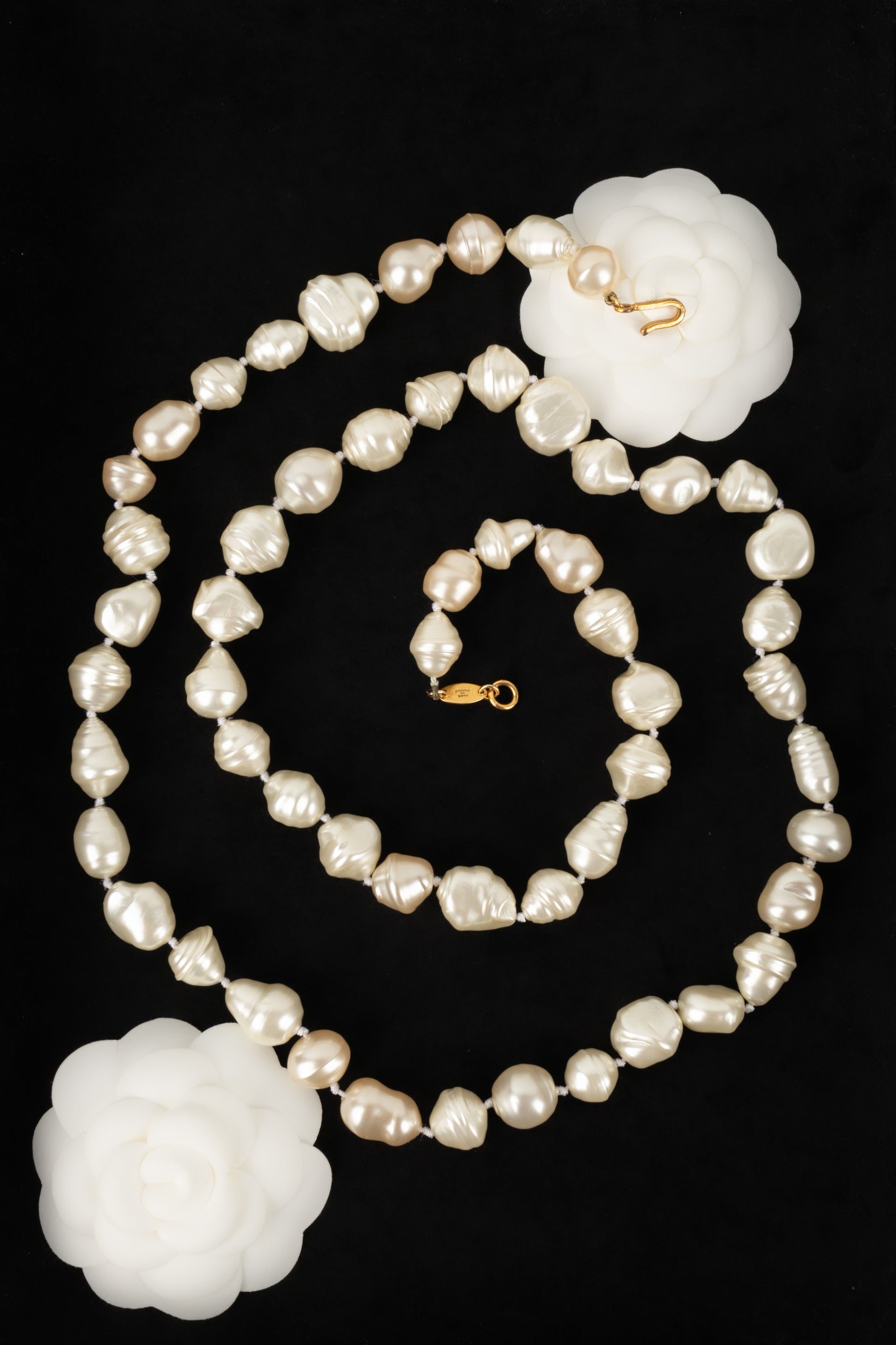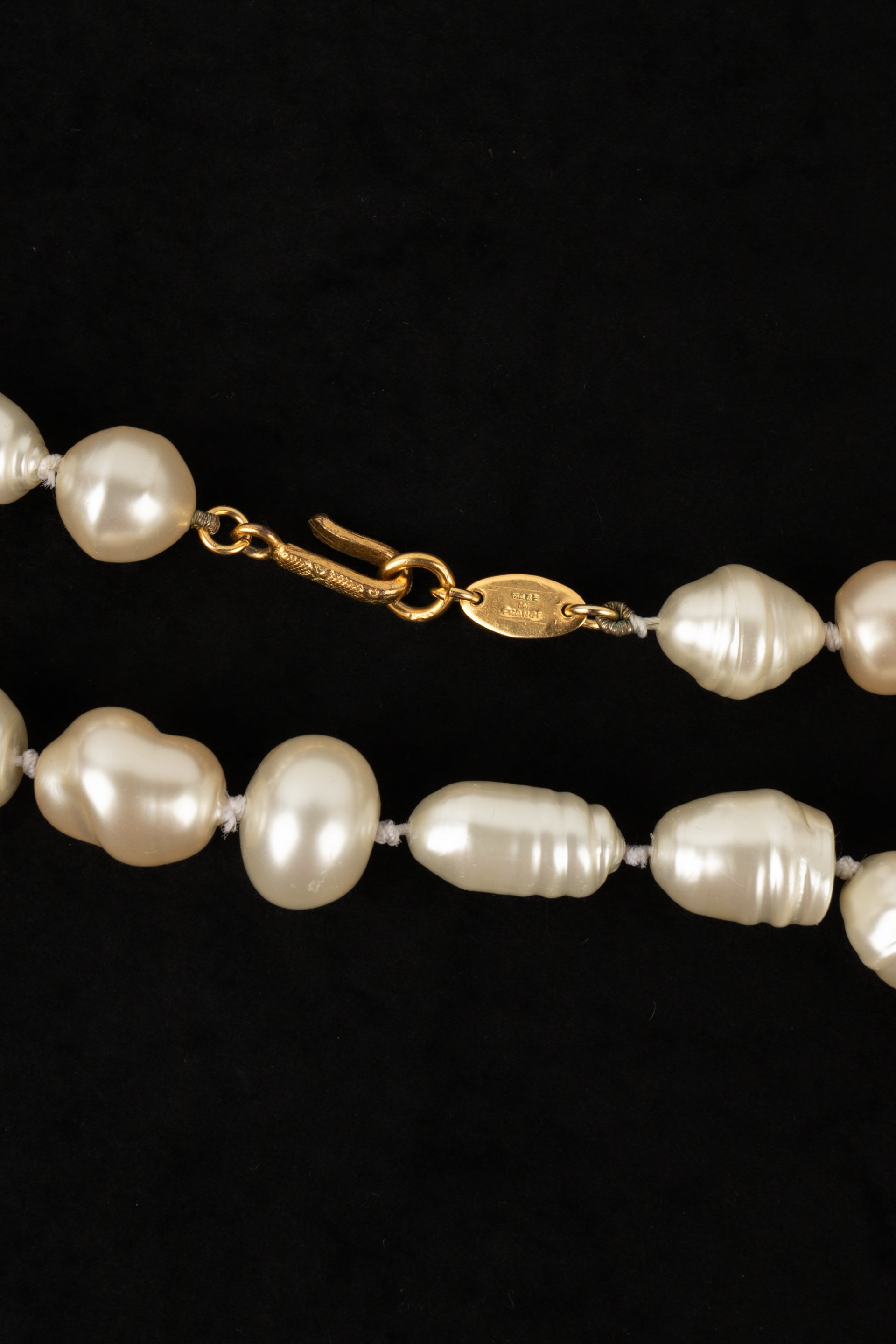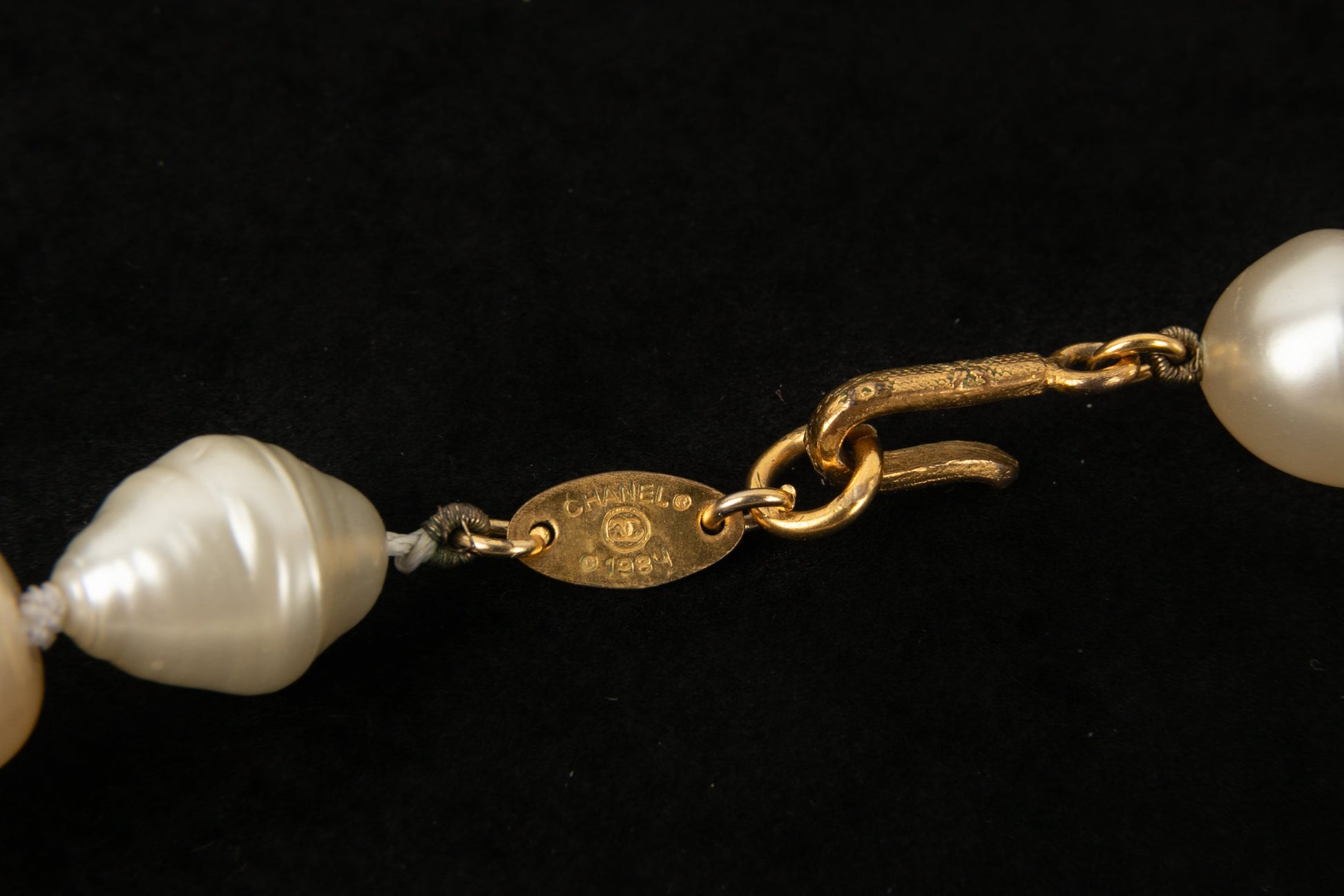 CHANEL - (Made in France) Collier / sautoir en perles nacrées fantaisies. Collection 1984.