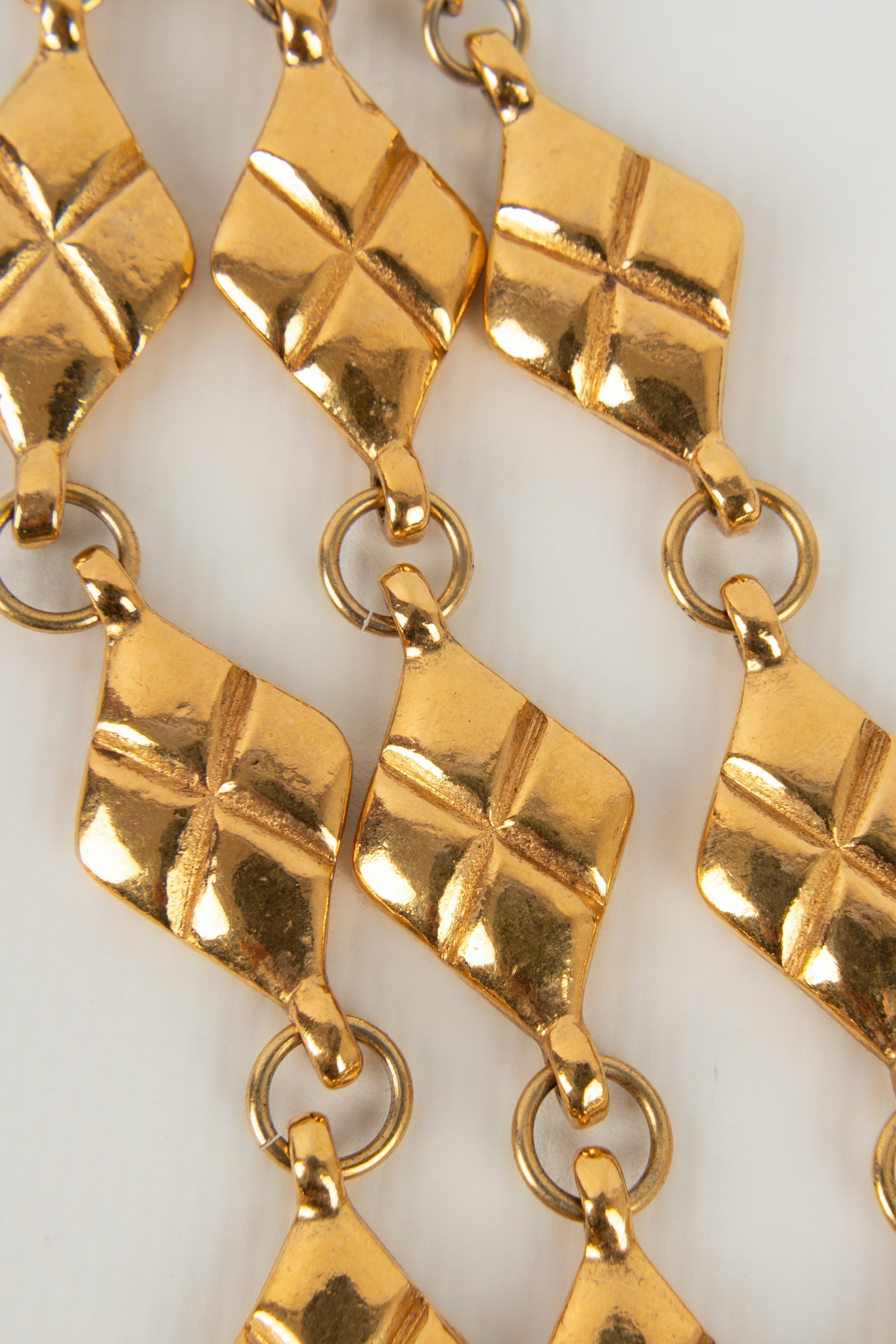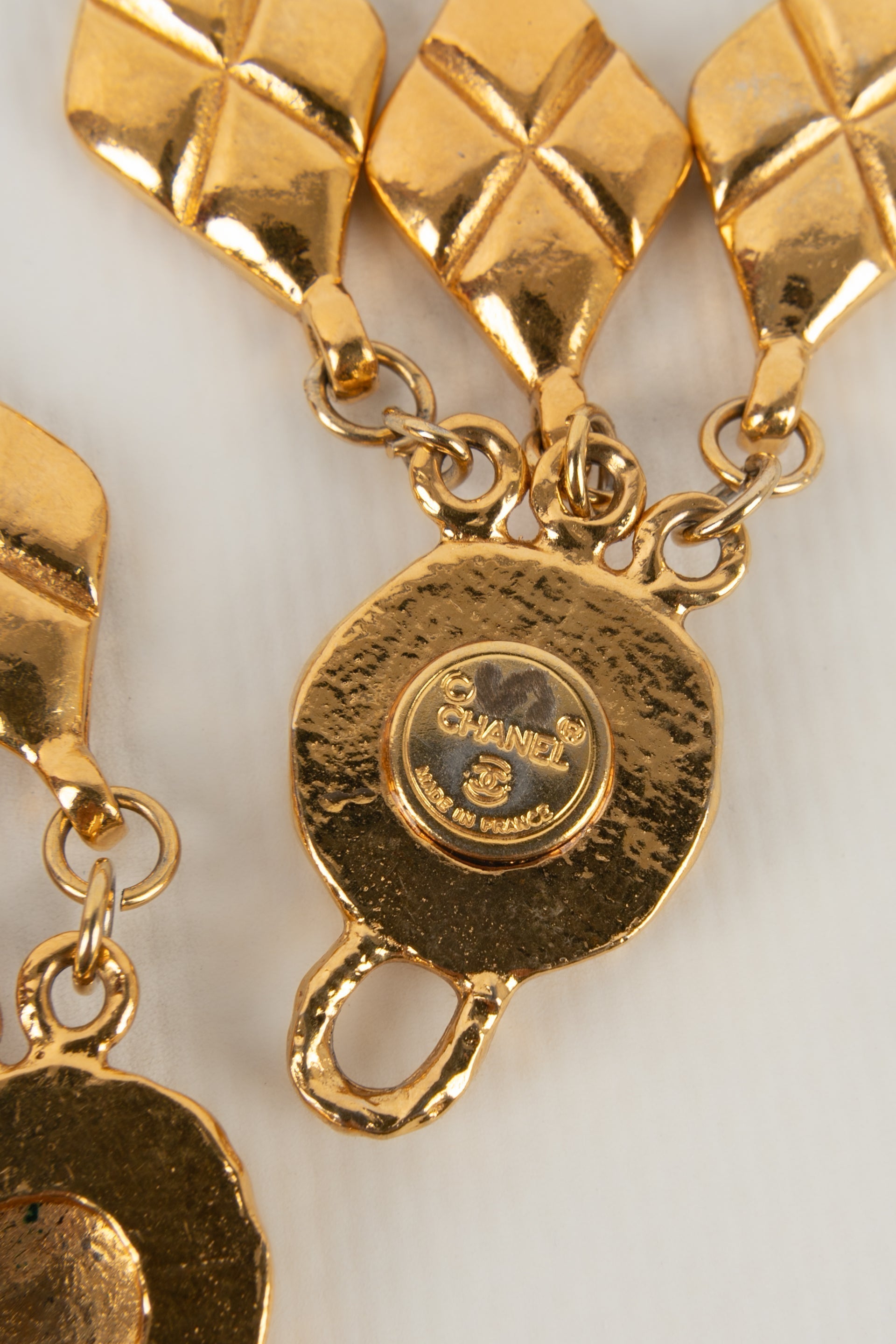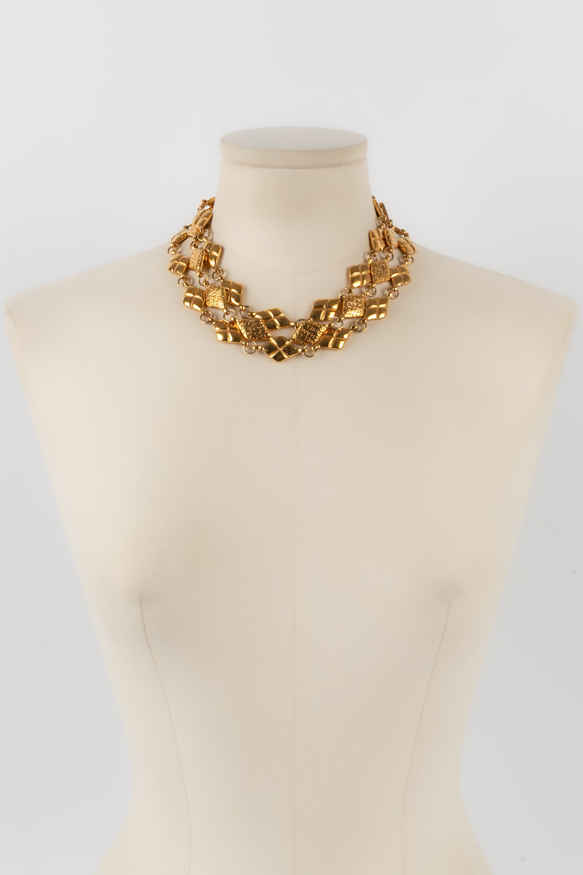 CHANEL - (Made in France) Collier en métal doré composé de trois rangs de médailles gravées "CHANEL". Bijou datant du début des années 1990.