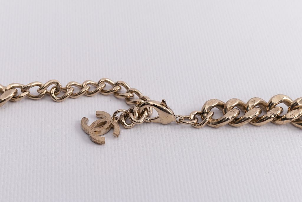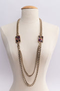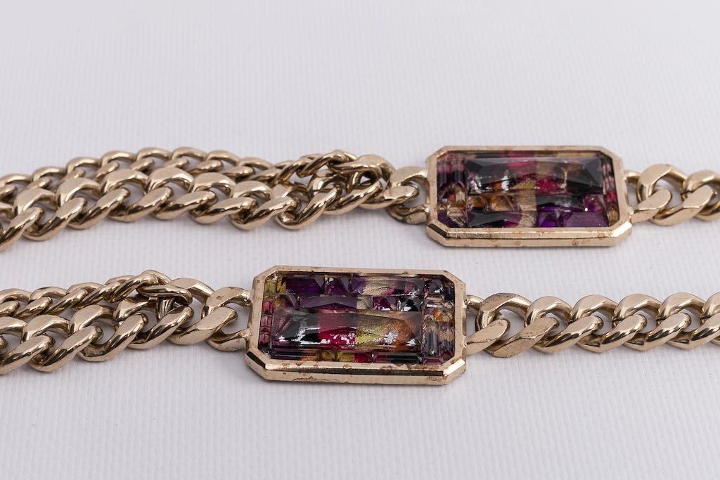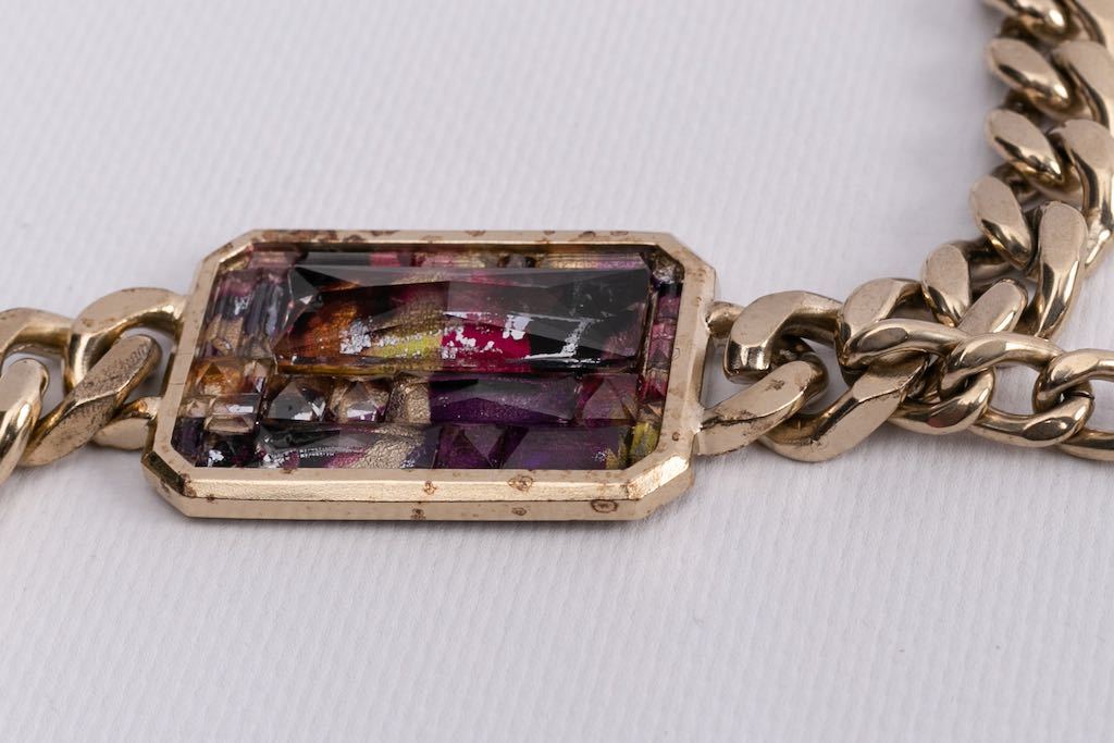 CHANEL -(D�fil�) Collier compos� d'une chaine gourmette altern�e de deux �l�ments multicolores. Mod�le de d�fil�, non sign�.