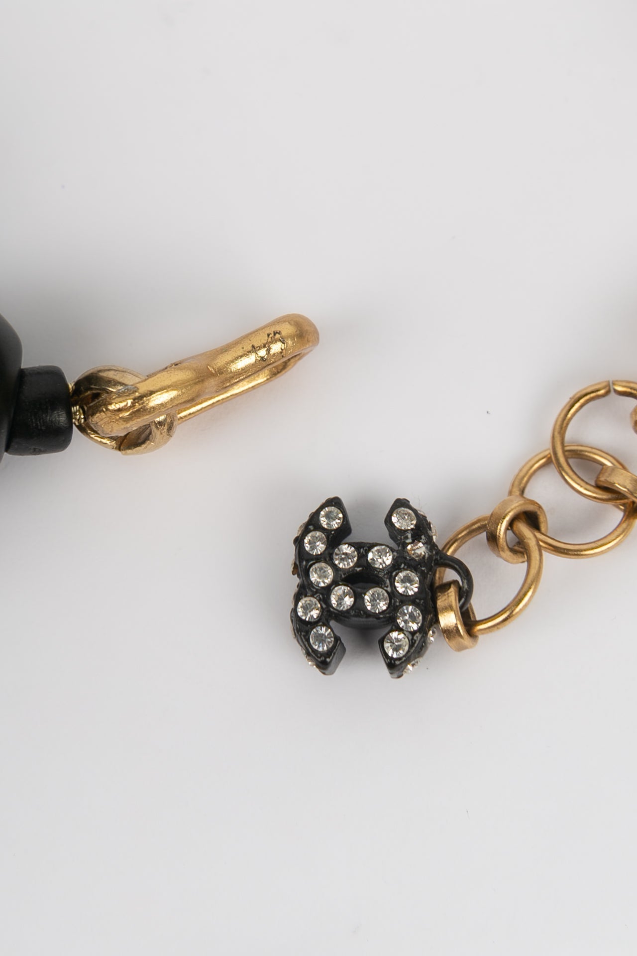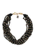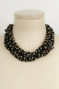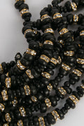 CHANEL - Collier court compos� de multiples rang�es de perles noires en bois et de strass de Swarovski. Mod�le de d�fil�, non sign�, issu des ventes priv�es.