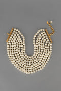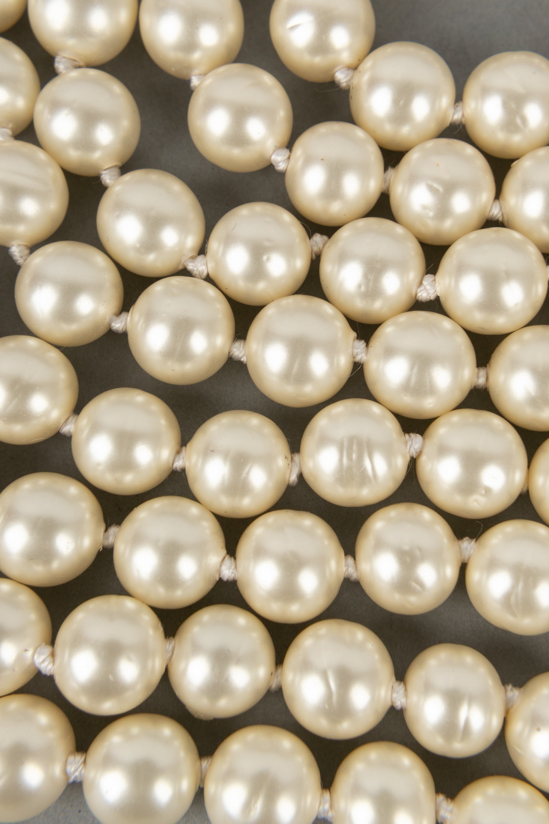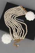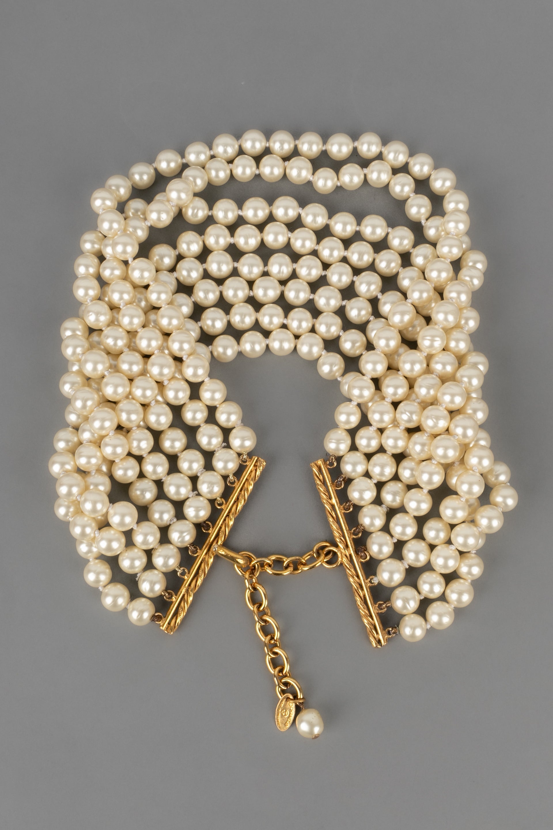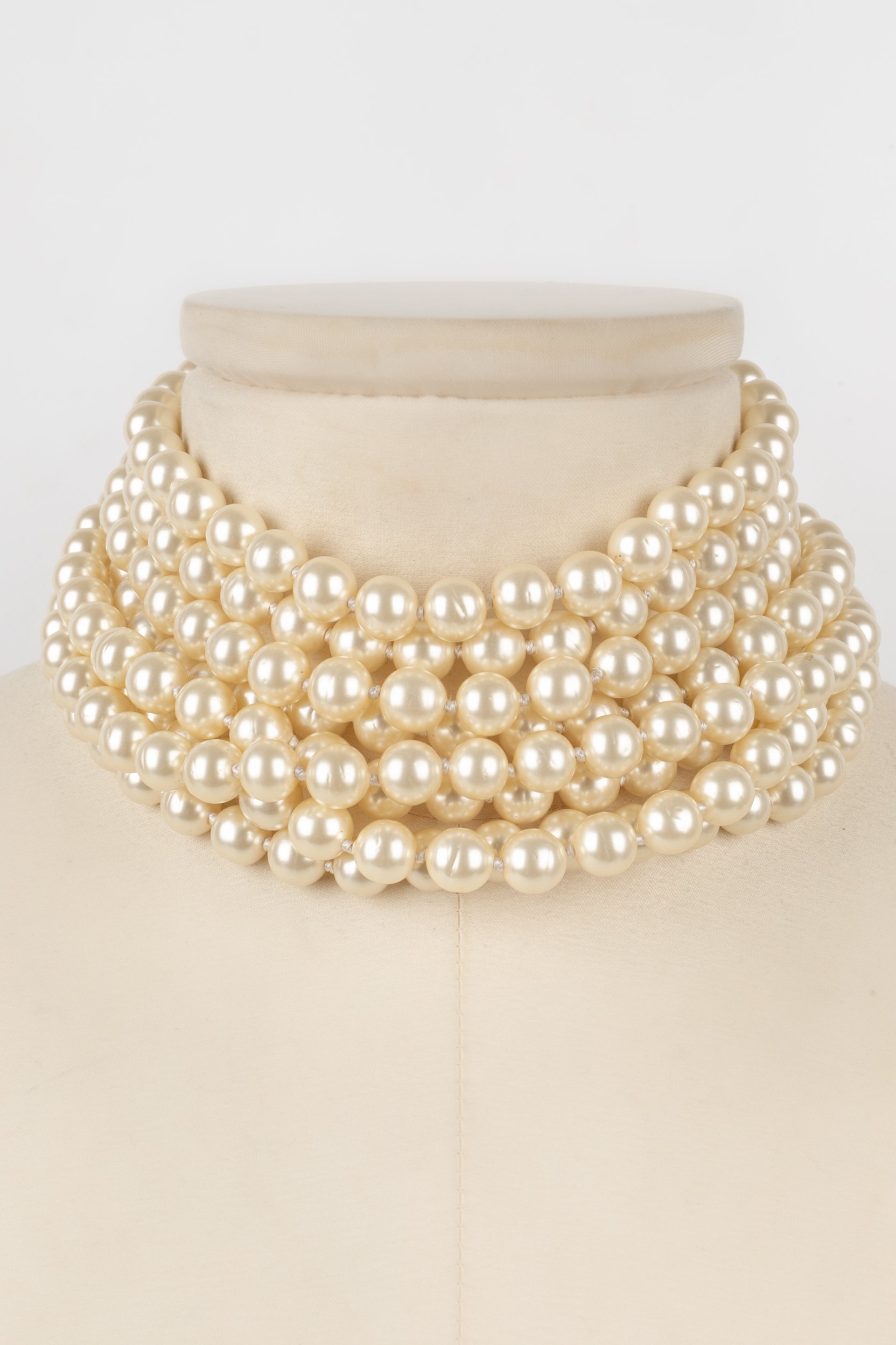 CHANEL - (Made in France) Collier ras du cou composé de huit rangées de perles nacrées fantaisies. Bijou datant de la fin des années 1980.