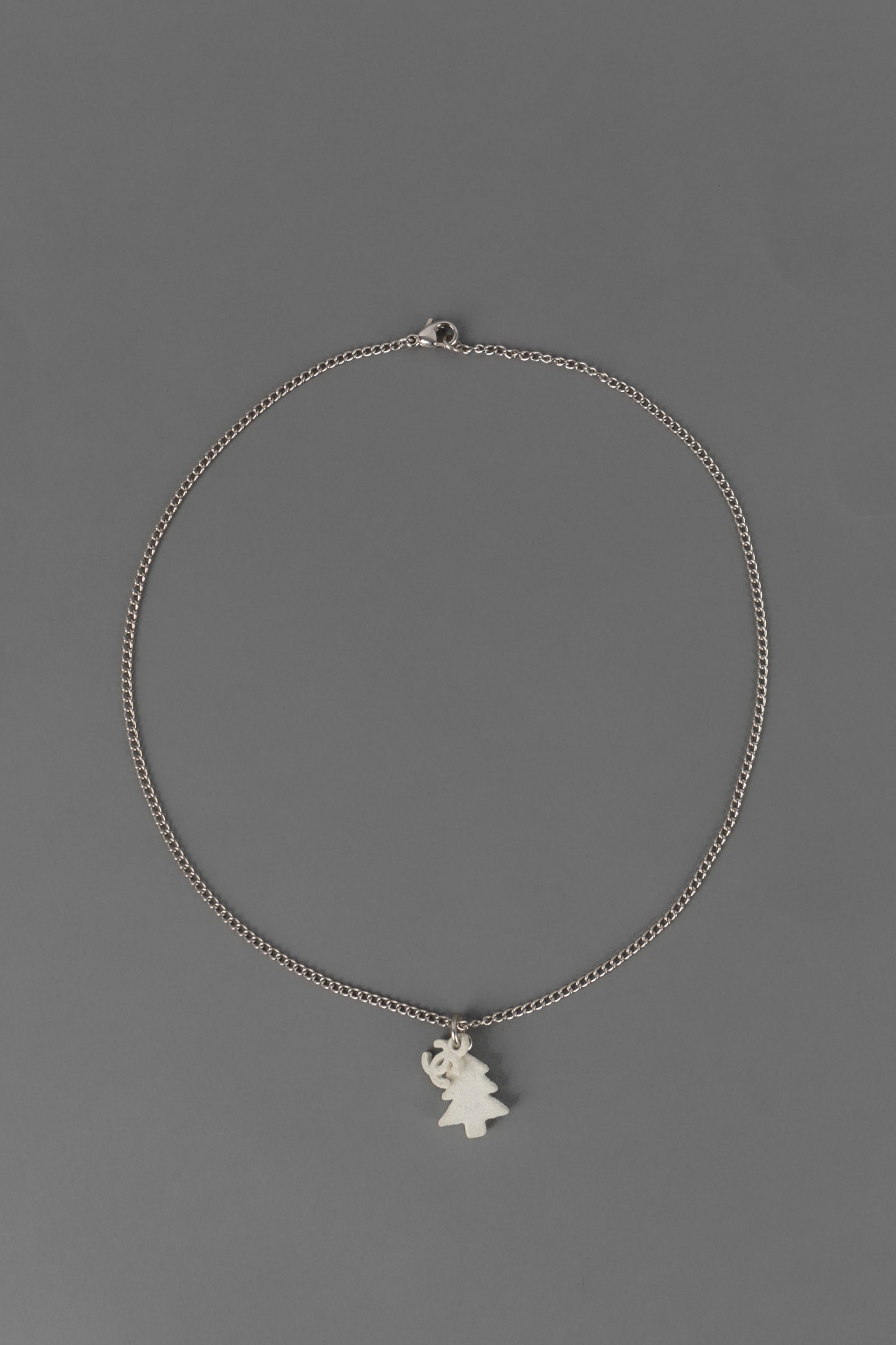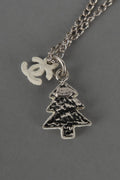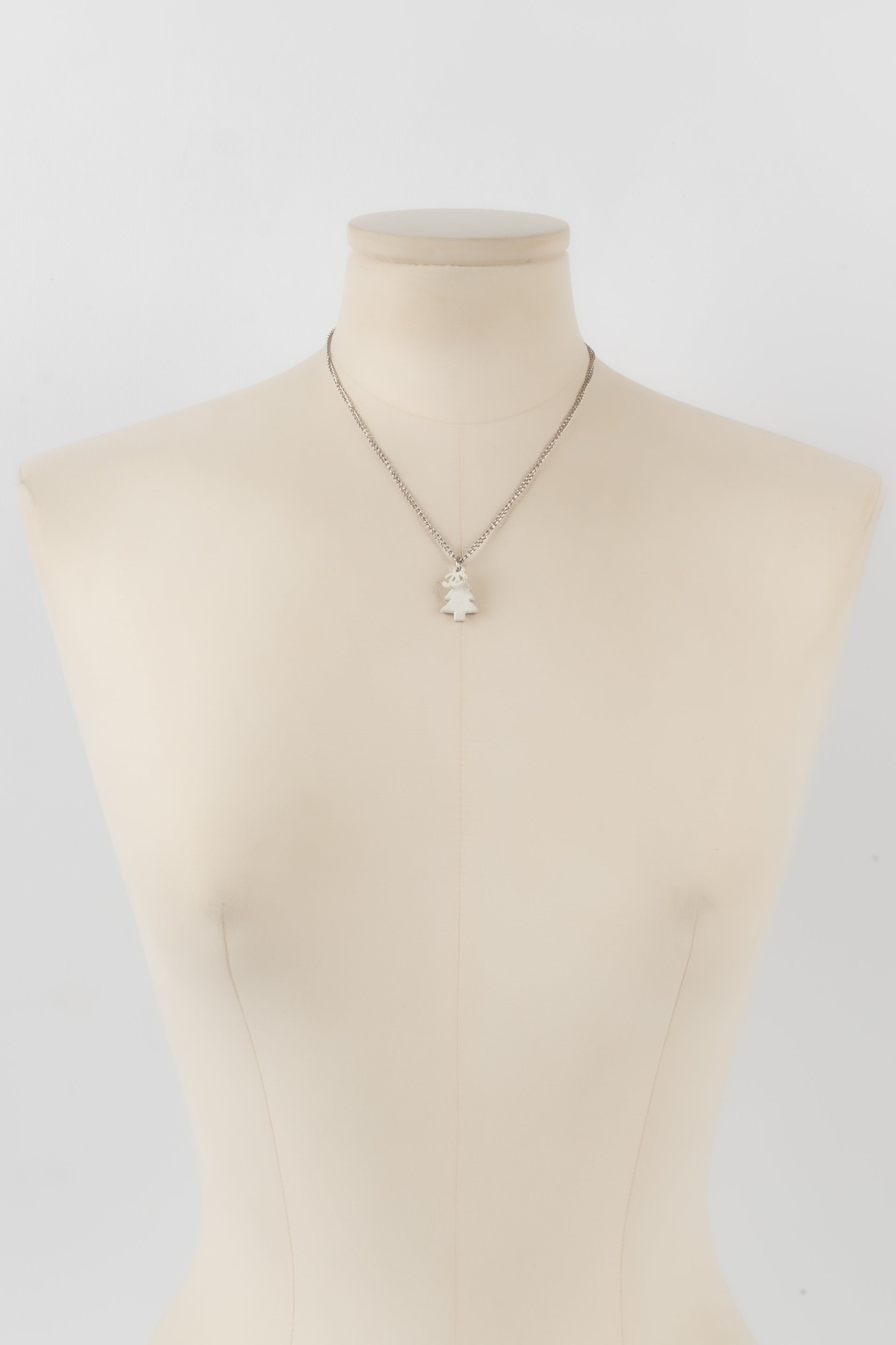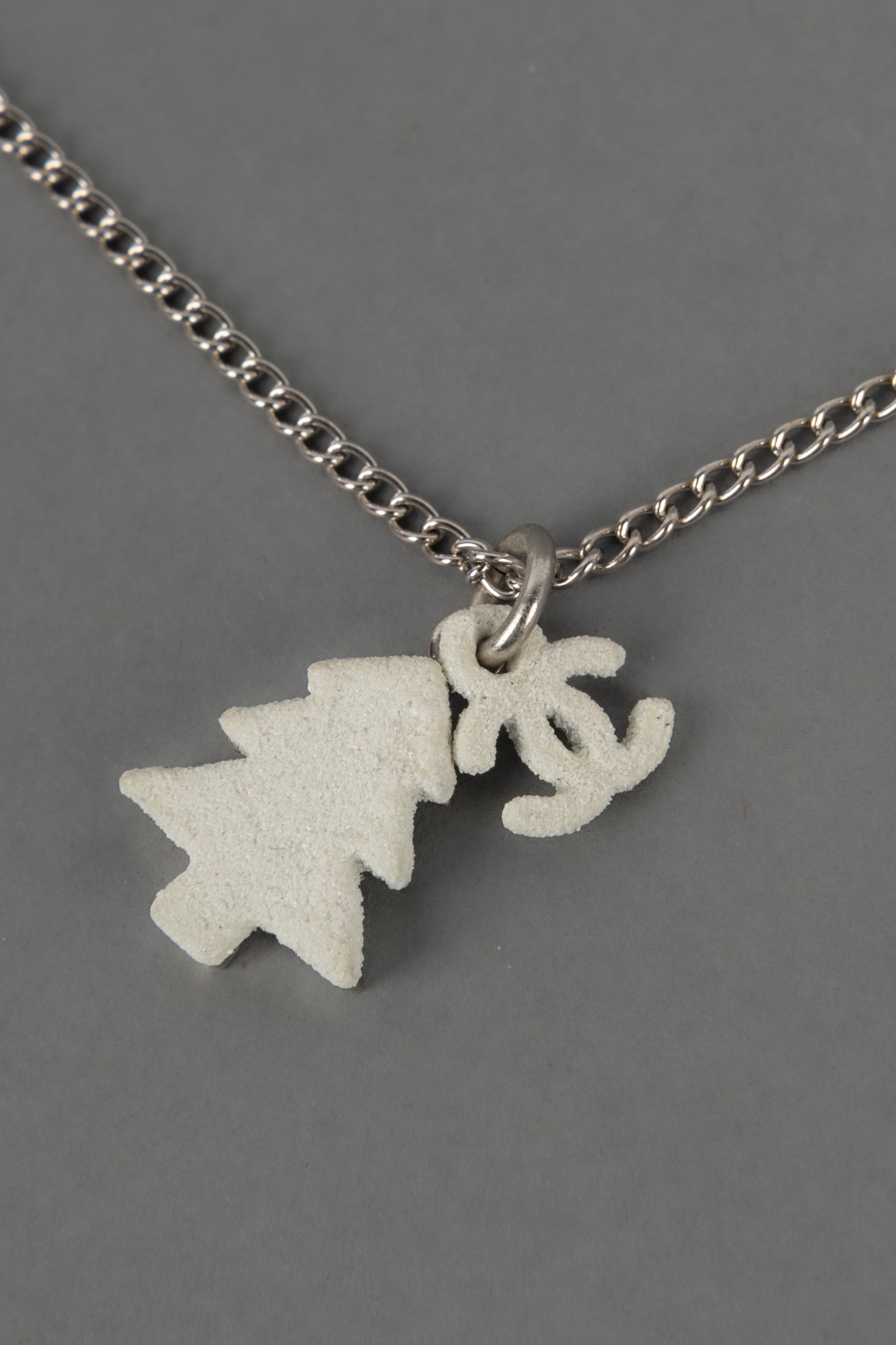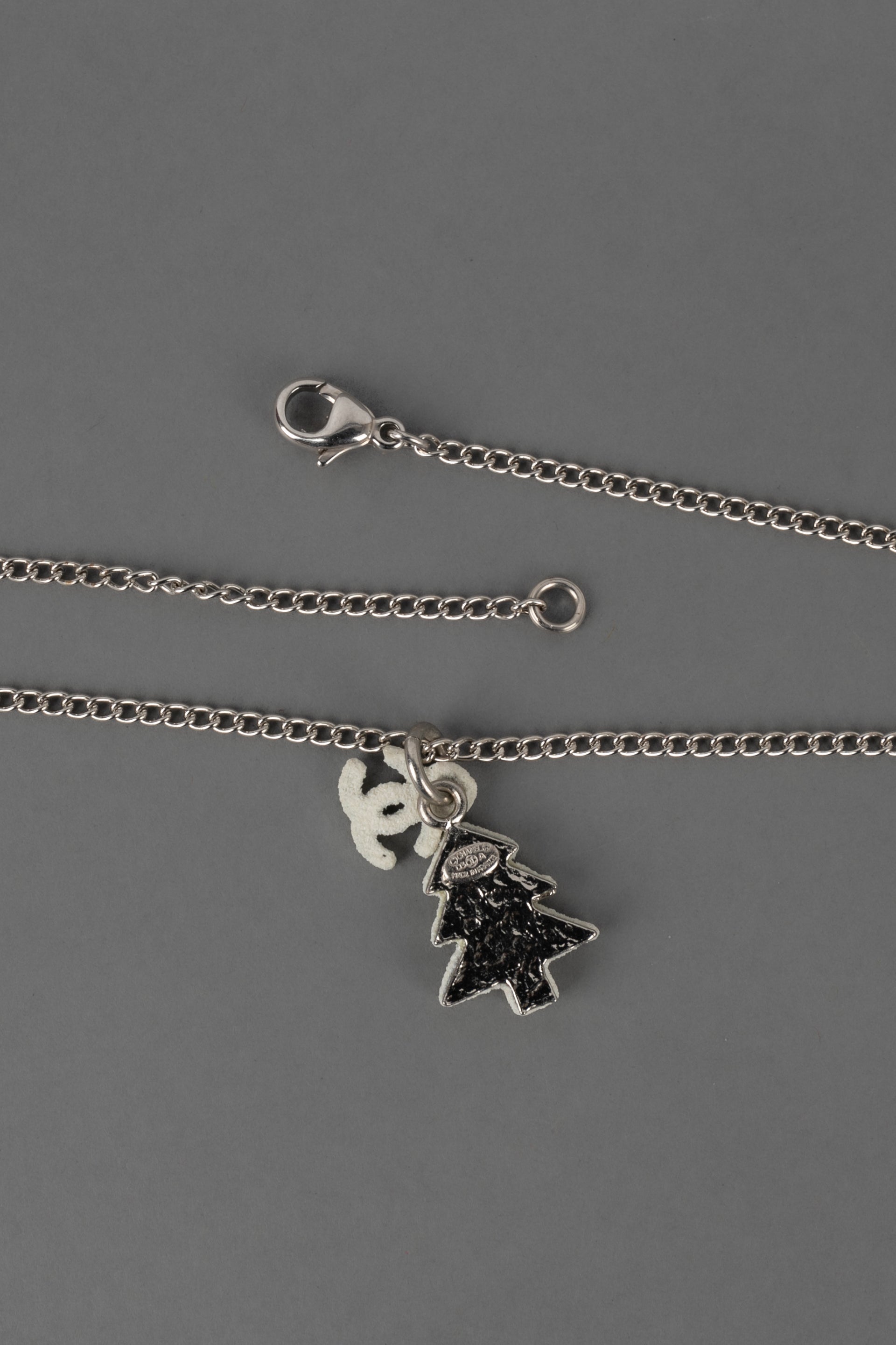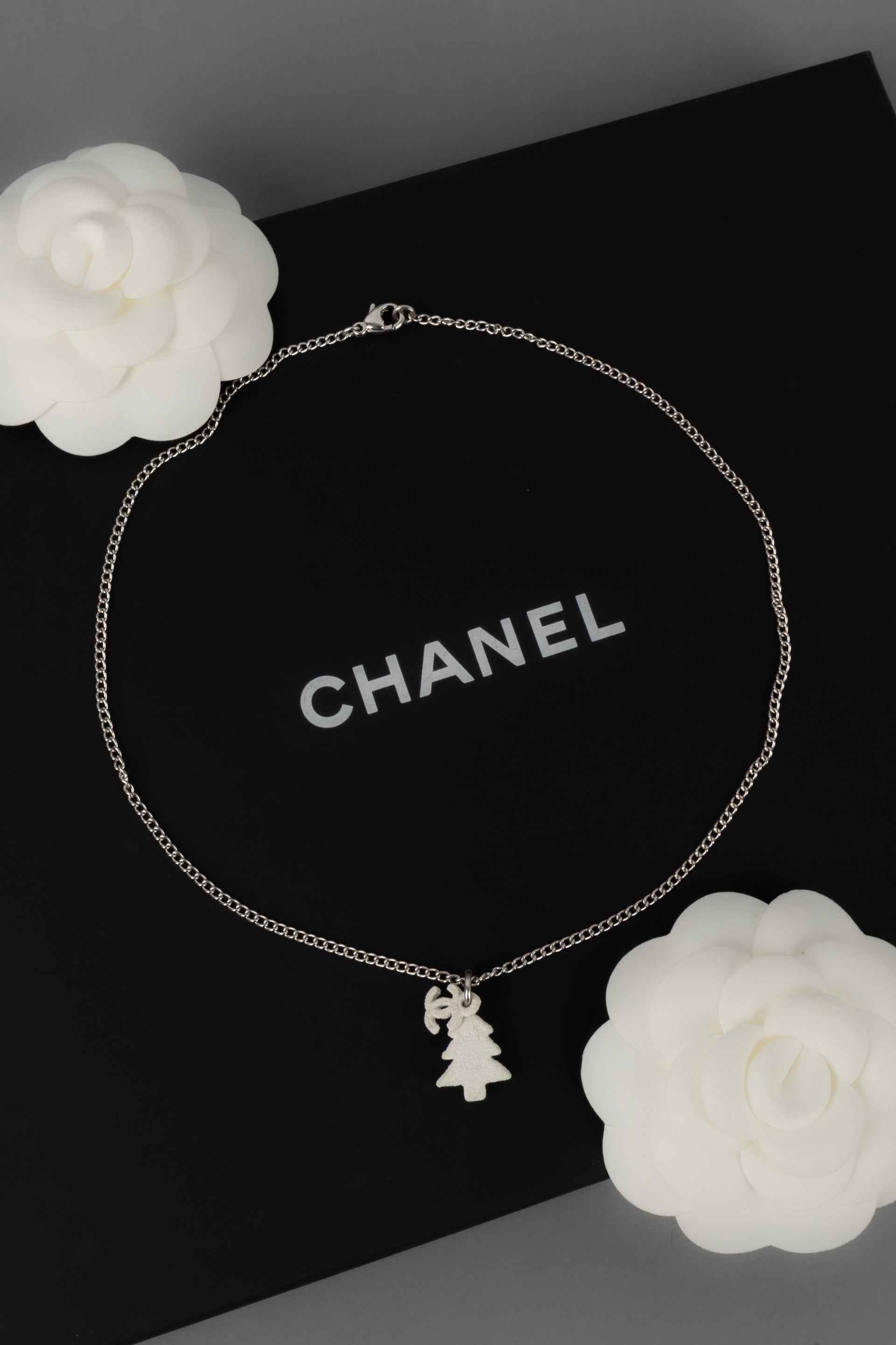 CHANEL - (Made in France) Collier court en métal argenté et pendentif floqué d'une matière imitant la neige. Collection Automne-Hiver 2003.