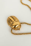 CHANEL - Collier court en m�tal dor� et son pendentif figurant un scarab�e.
