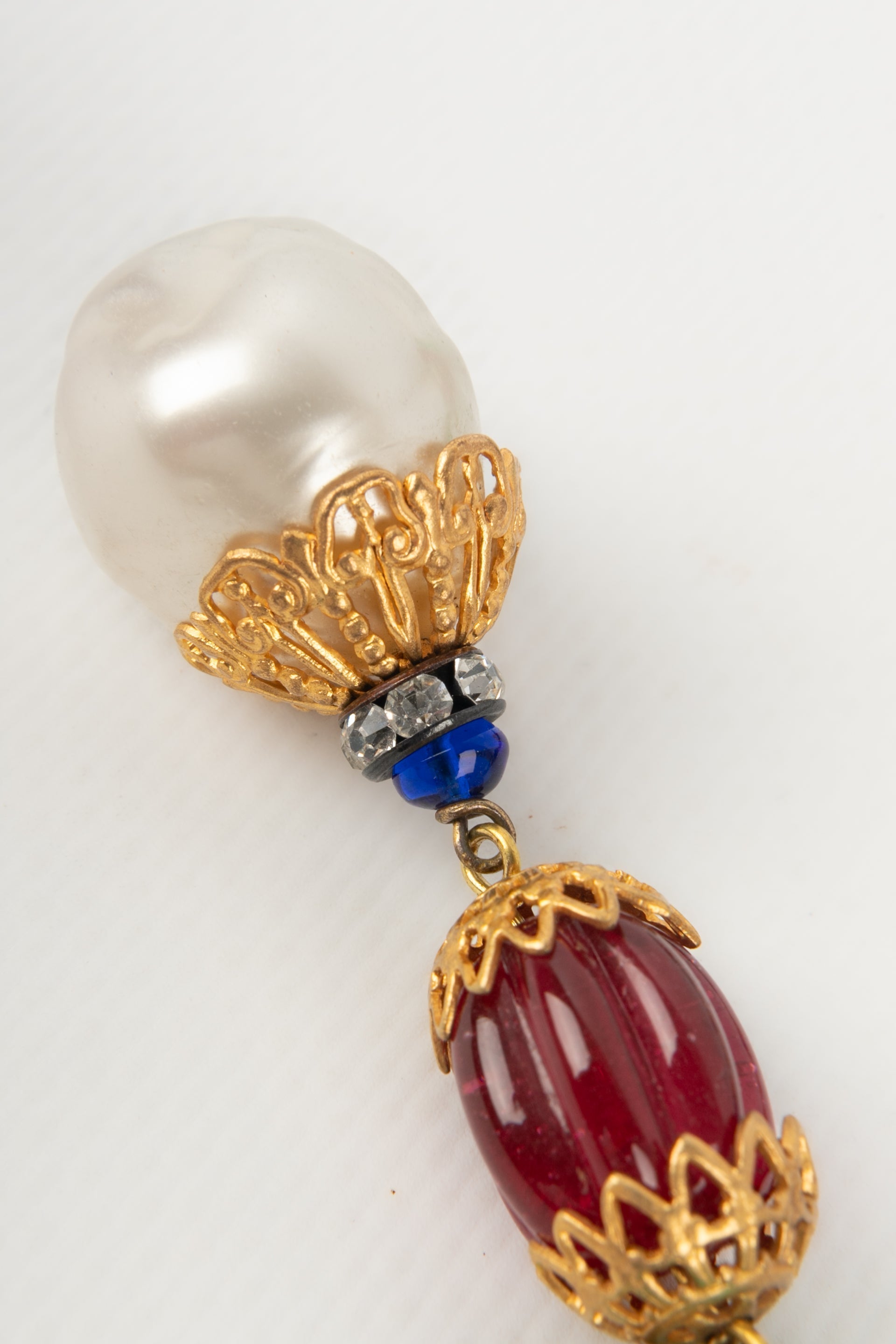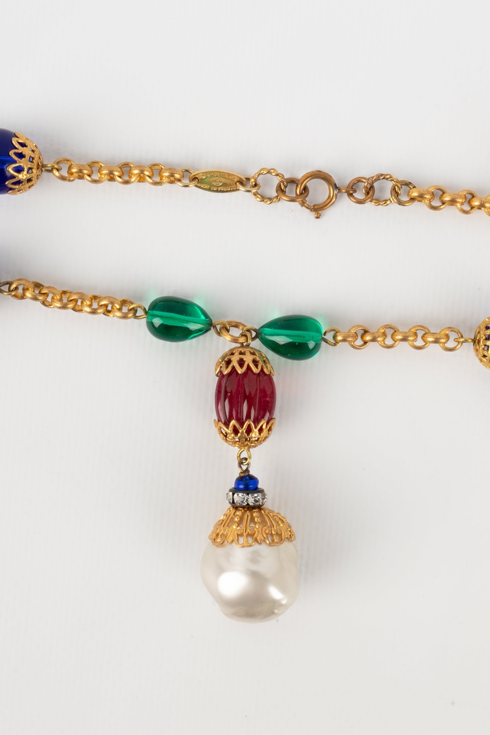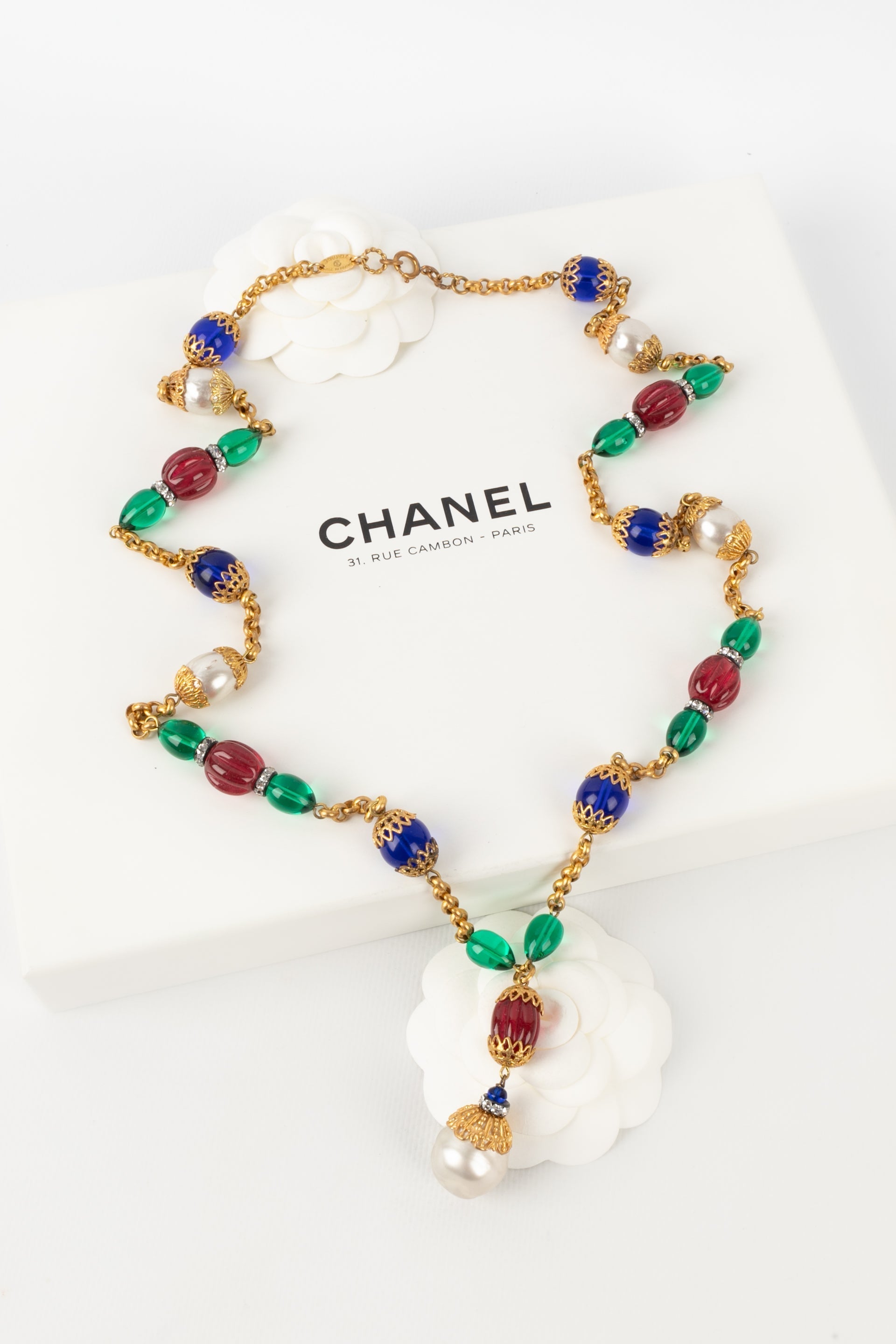 CHANEL - (Made in France) Collier en métal doré, perles nacrées fantaisies et perles de verre. Travail de l'atelier Rousselet pour la maison Chanel