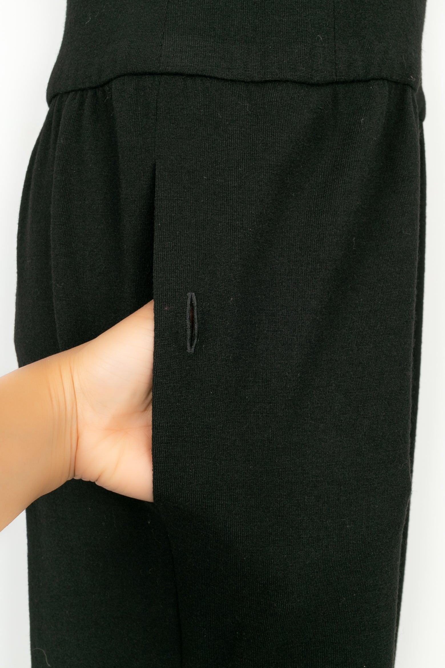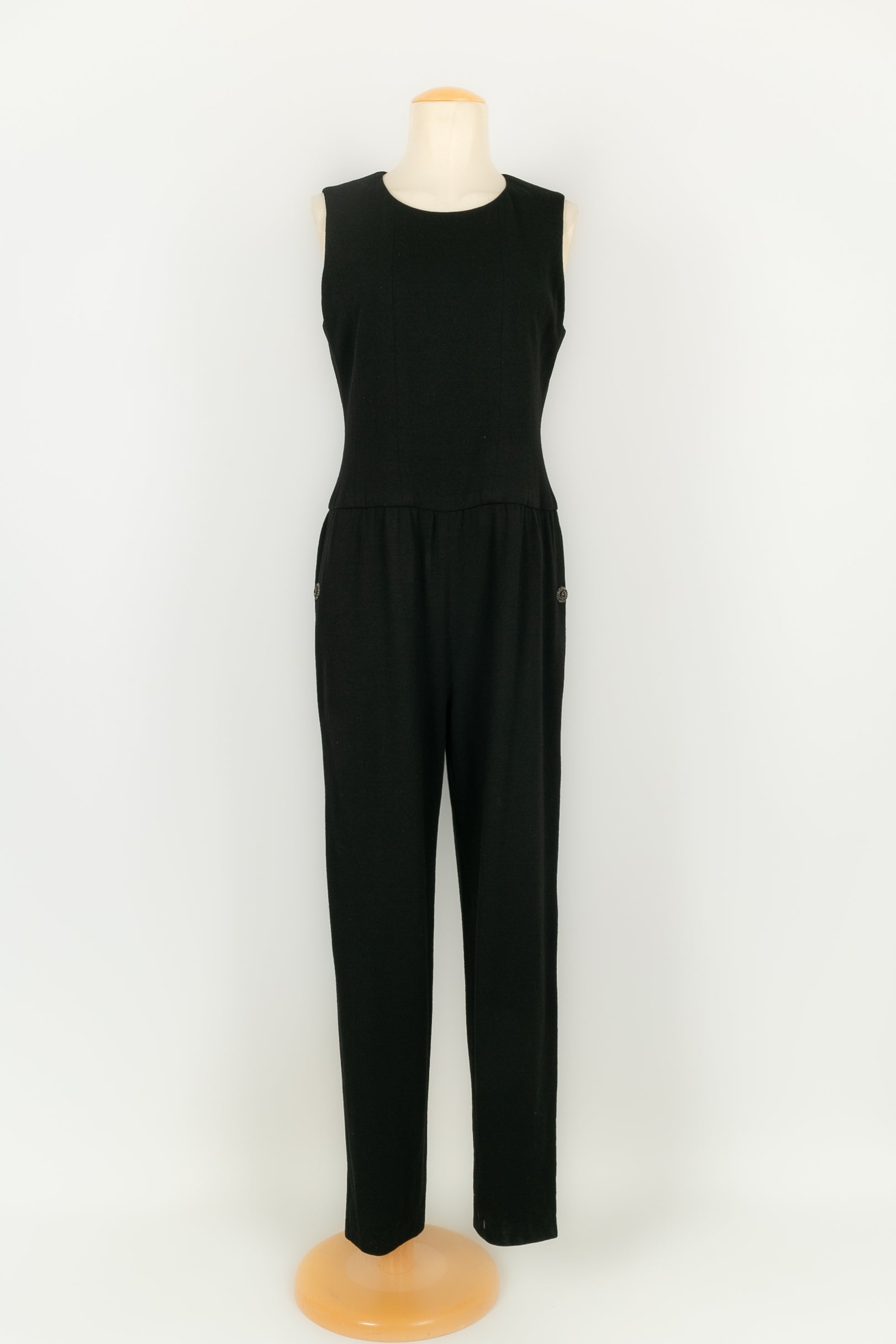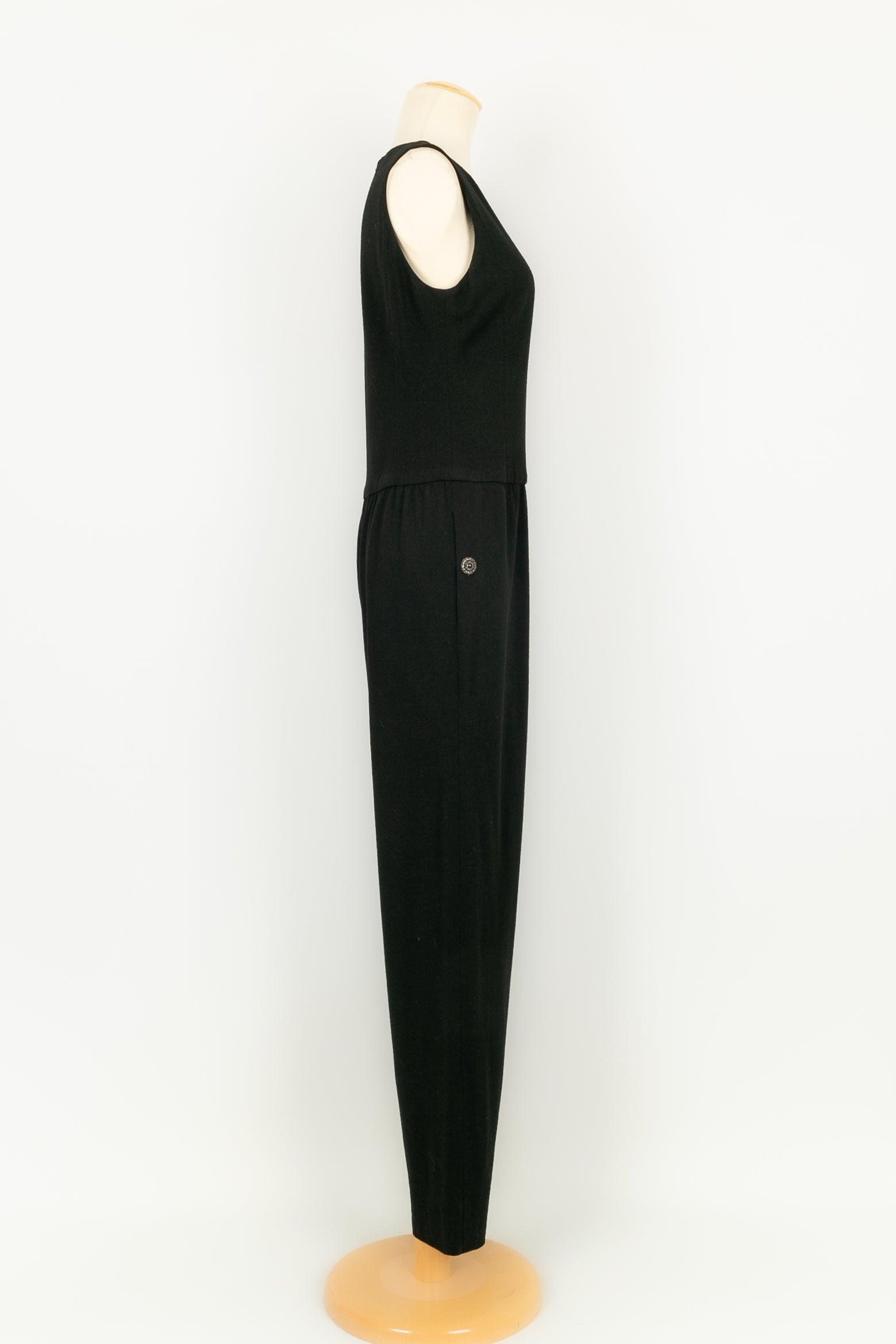 CHANEL - Combinaison en laine noire et doublure en soie. Pas de taille indiqu�e ou d'�tiquette de composition, elle convient � un 42FR.
