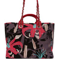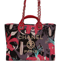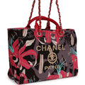 Chanel Small Deauville Shopping Tote Grey and Pink Tropical Floral Velvet Light Gold Hardware