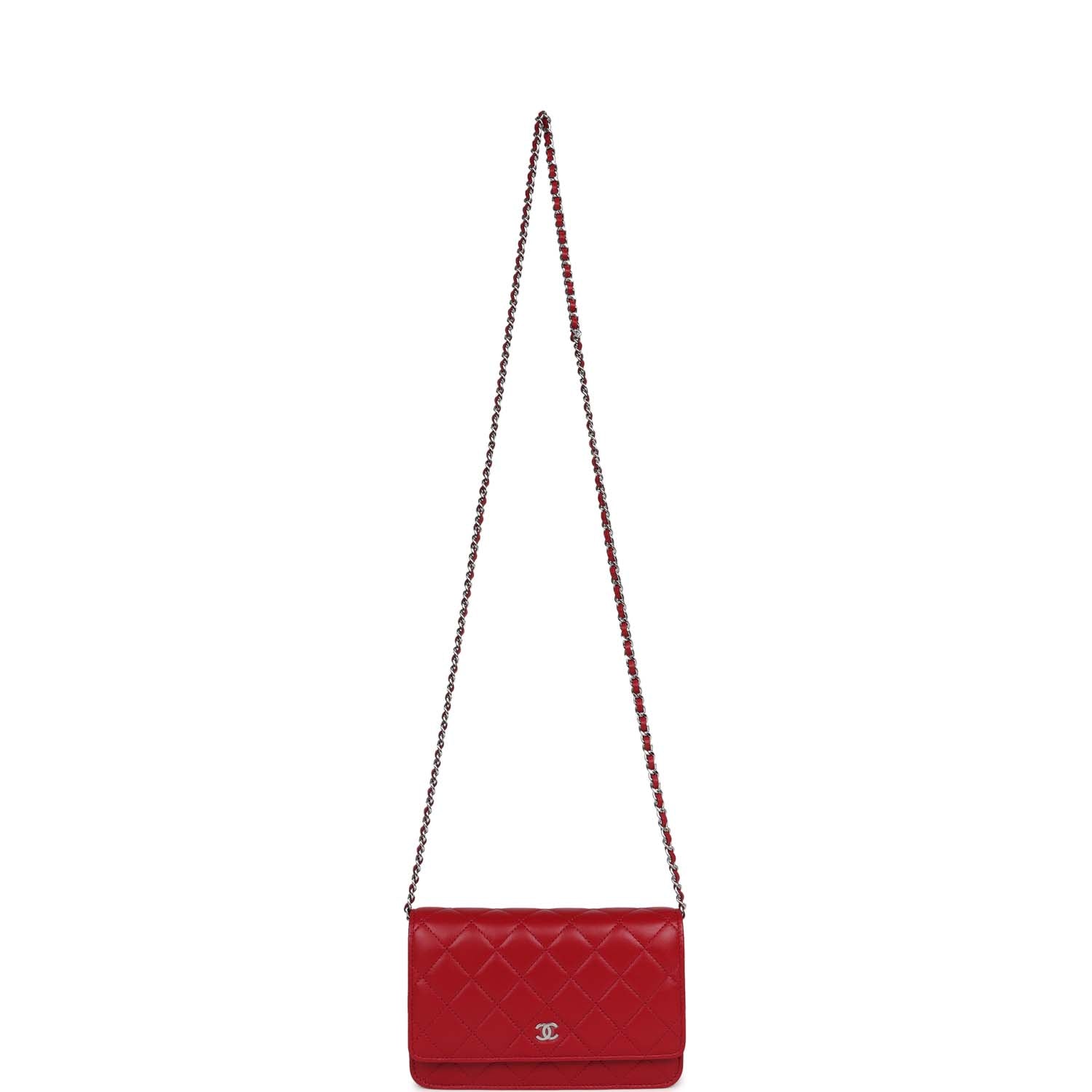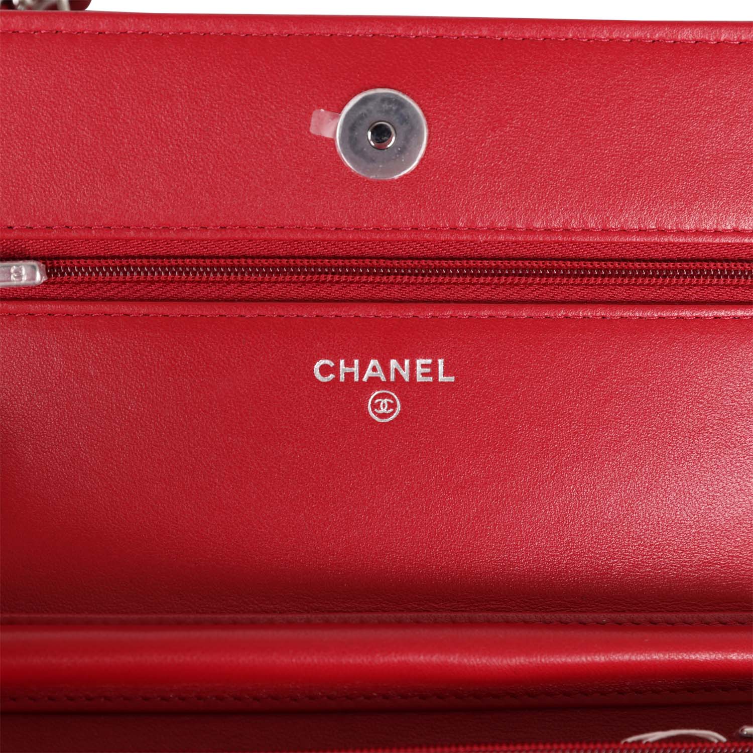 Chanel Wallet on Chain WOC Red Lambskin Silver Hardware