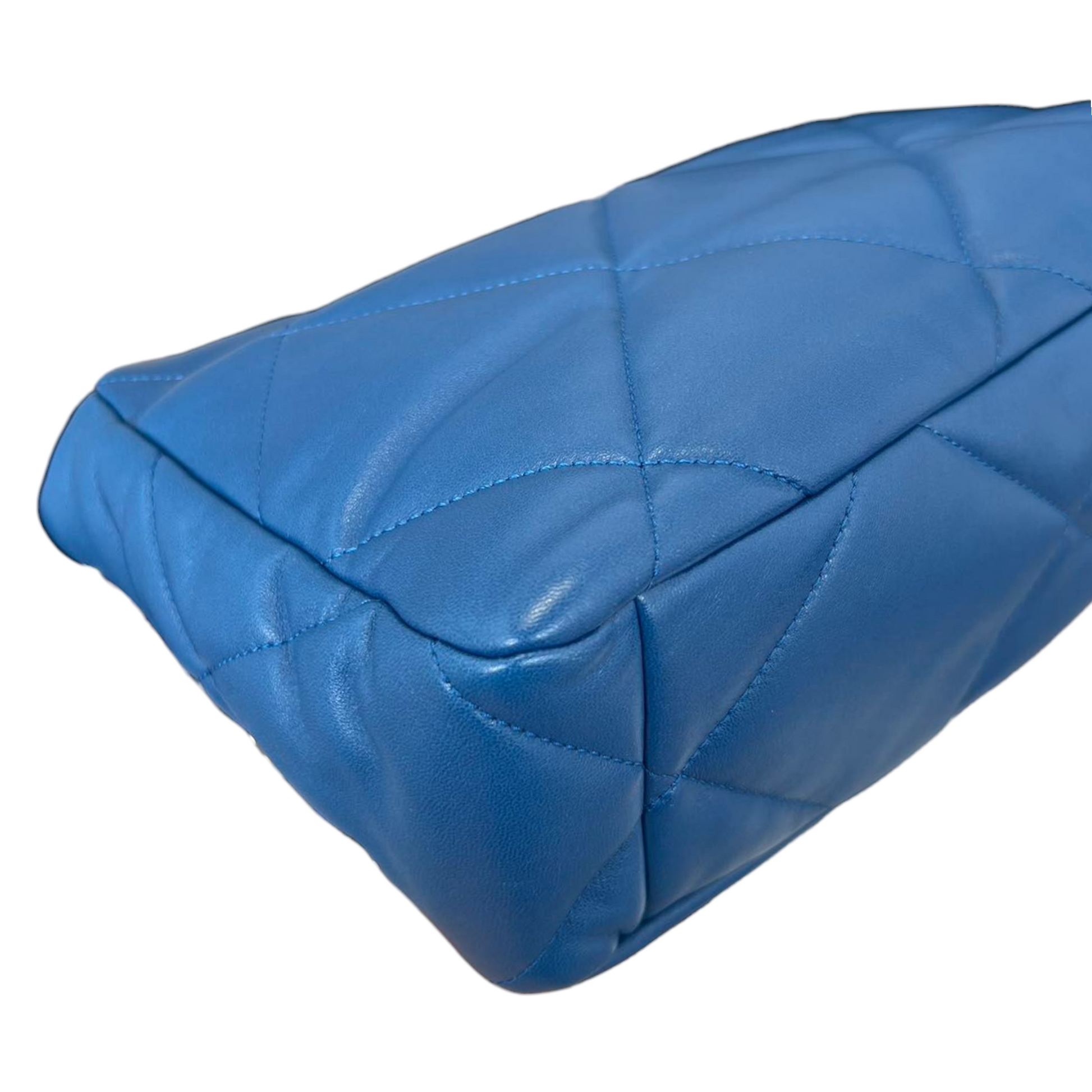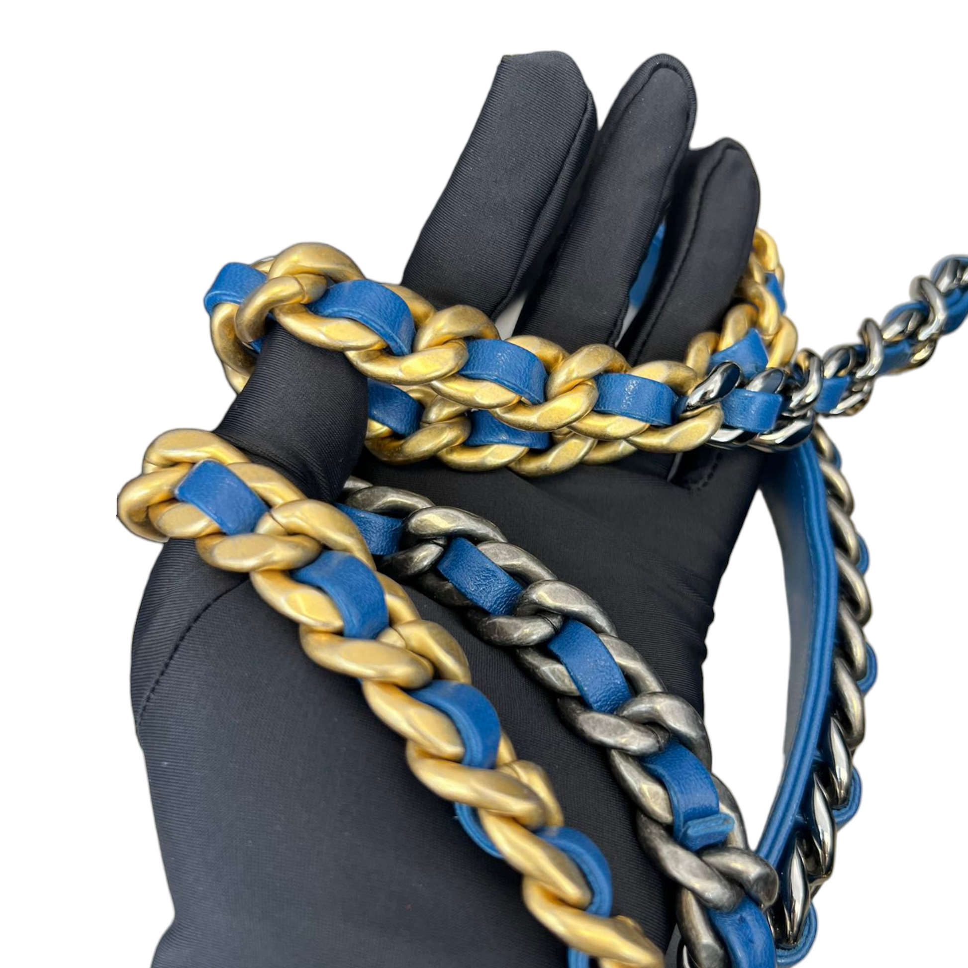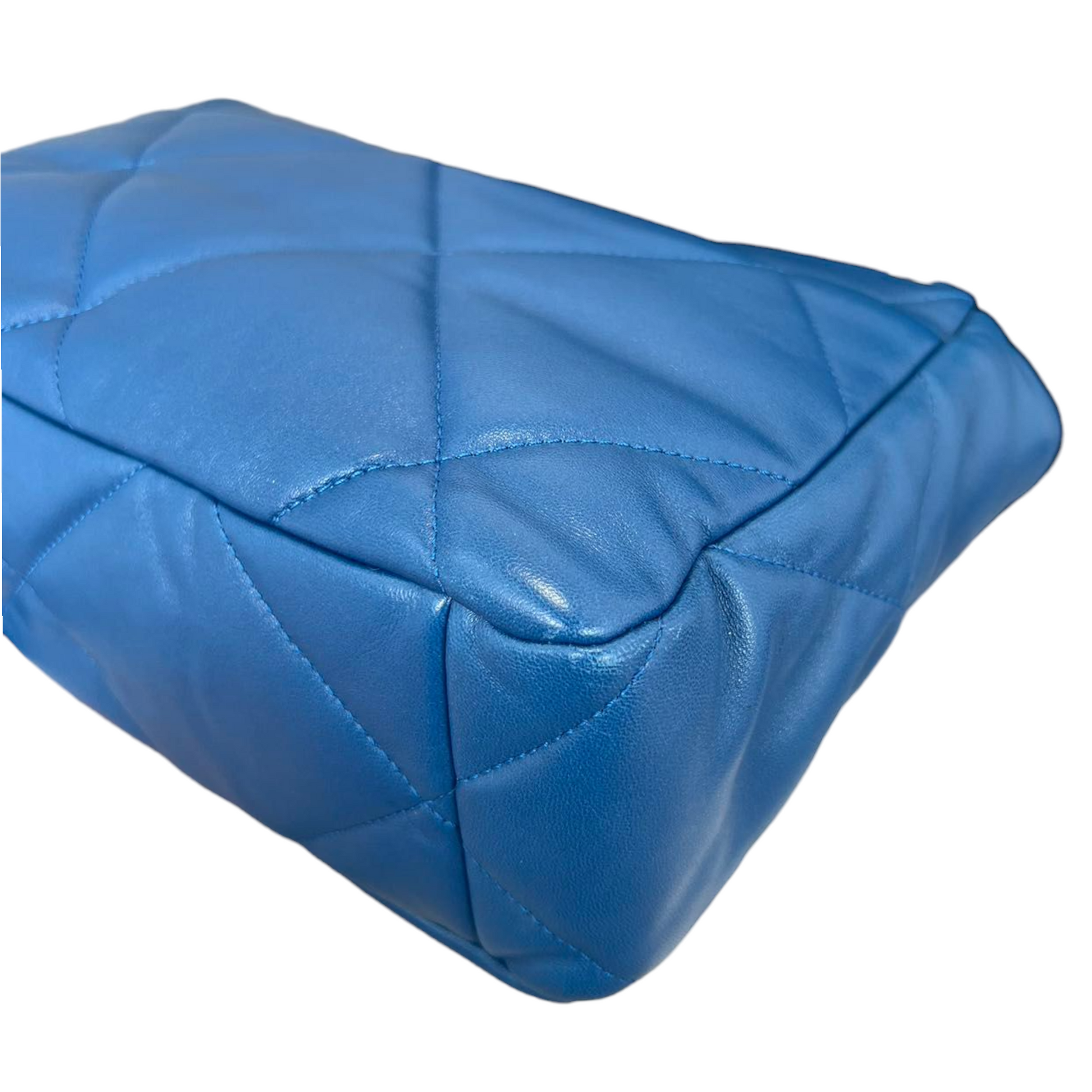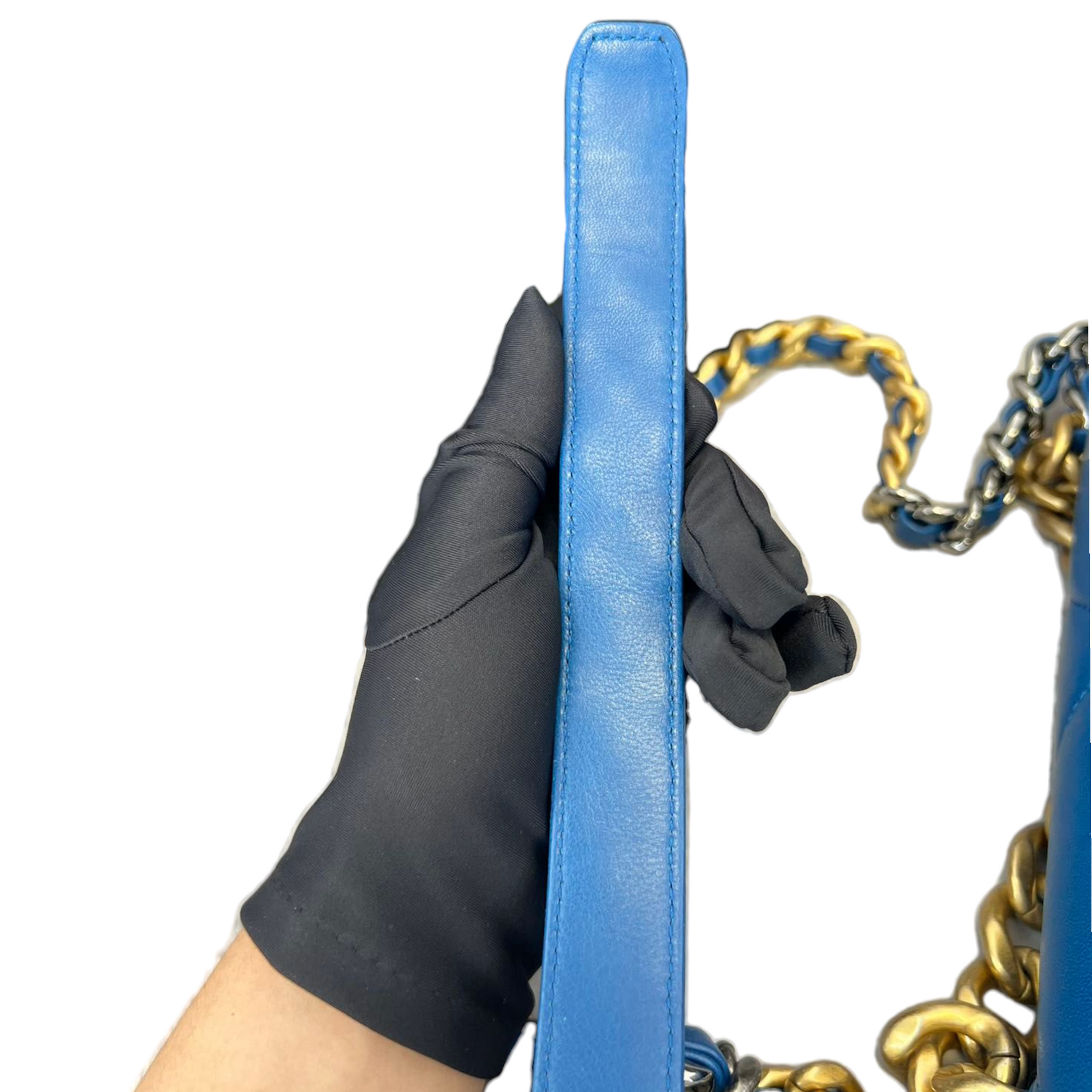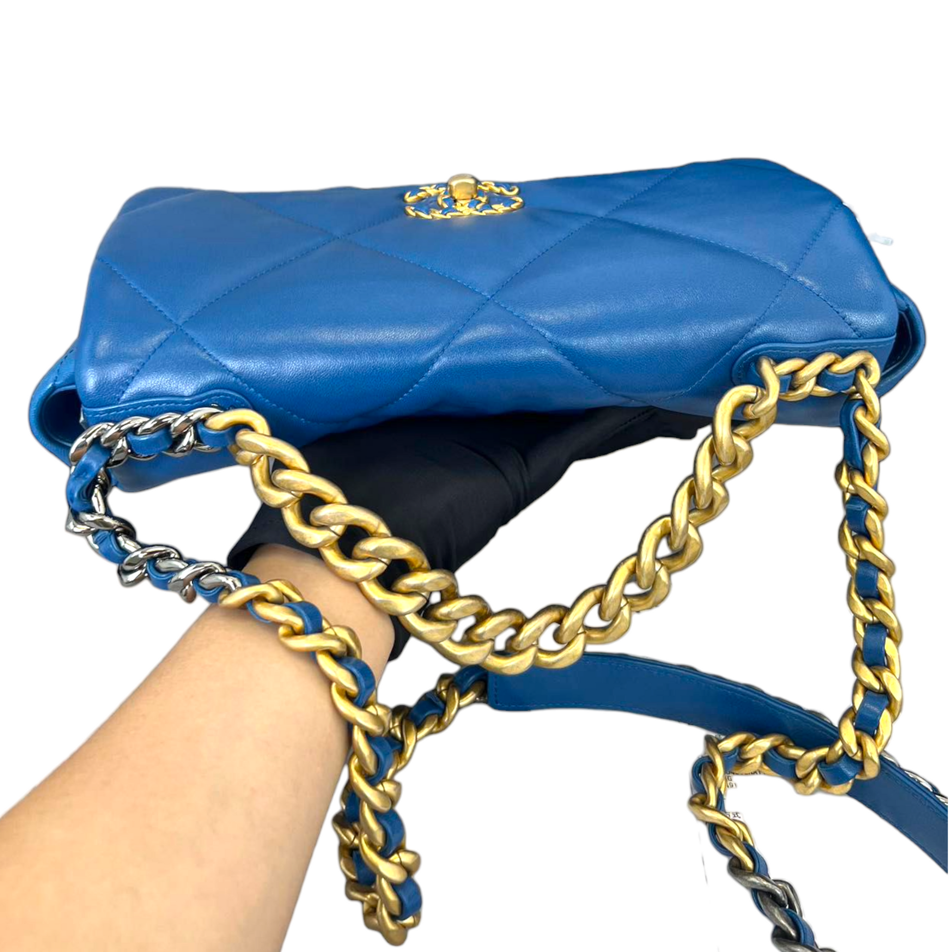 This Chanel 19 Medium features a flap enclosure to maximize space and increase security for your items. Adorned with gold-quilted leather and a beautiful mix of structured and soft with it's goatskin leather exterior. This is a beautiful addition to your collection.