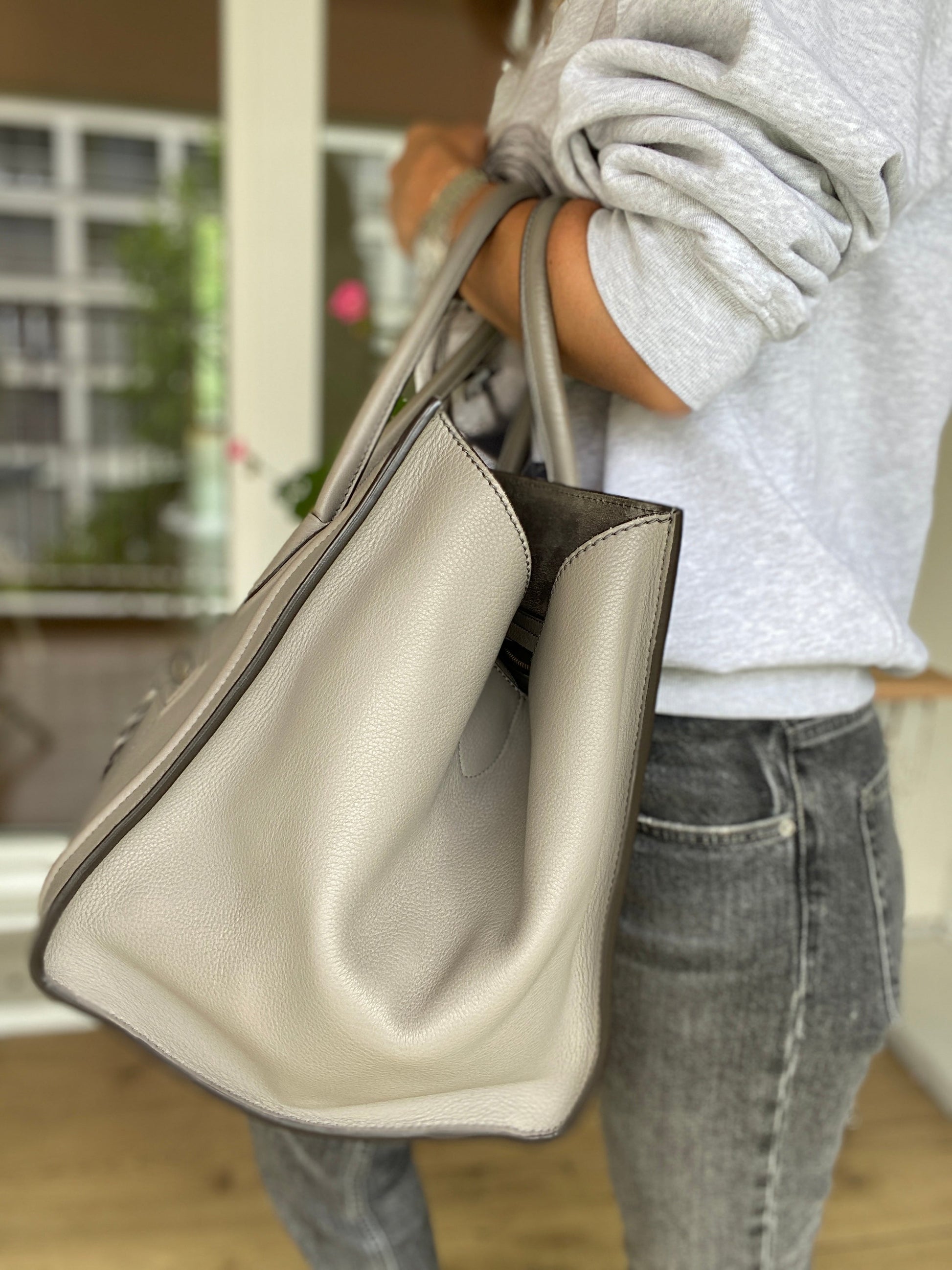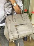 CÉLINE PHANTOM MEDIUM LUGGAGE LEATHER TOTE IN GREY