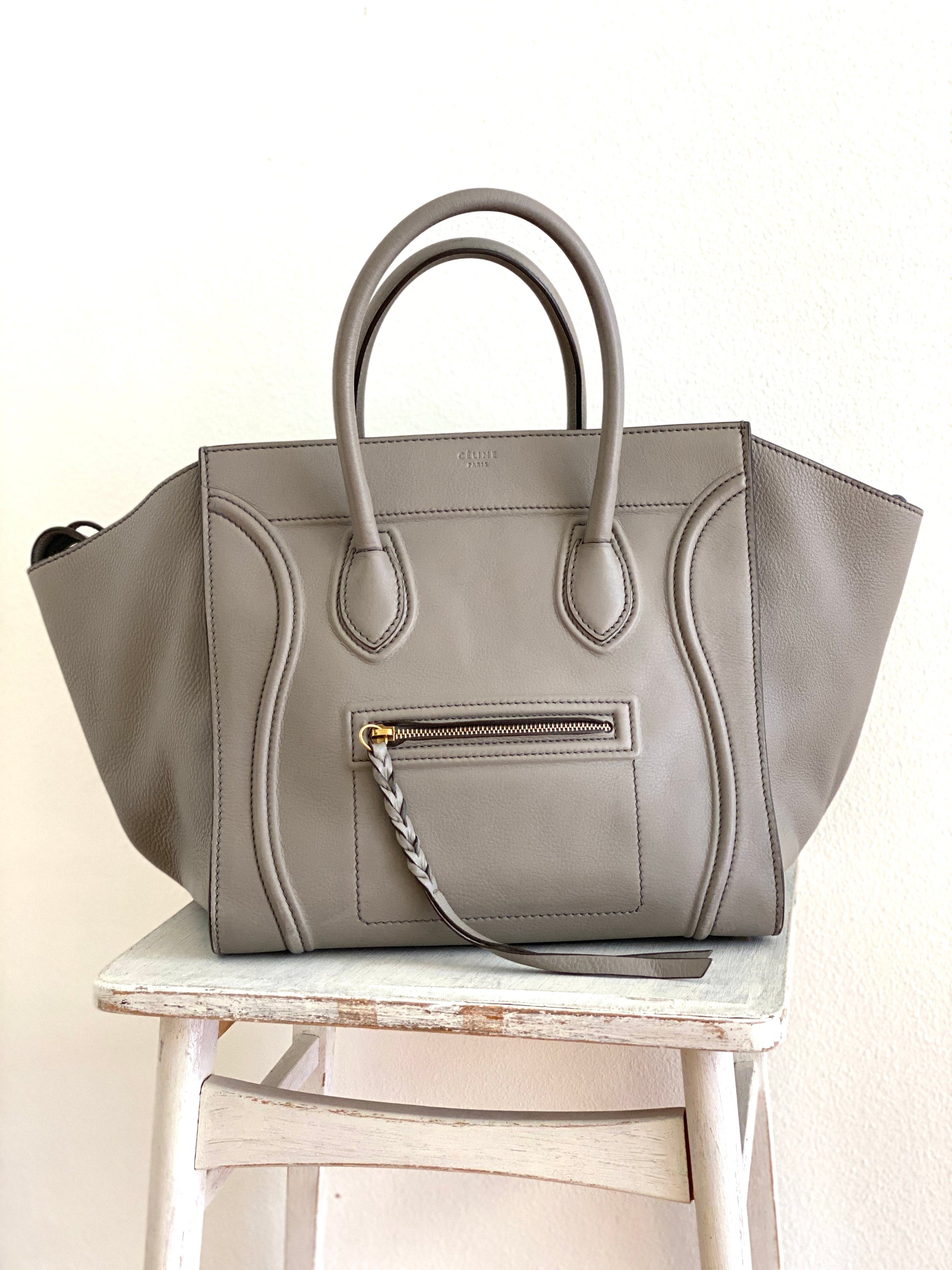 The Luggage tote was introduced in spring 2010, Phoebe Philos debut collection at Celine. Over the years the bag has been introduced in many sizes and versions, some of which are no longer available. The Phantom Luggage is a slightly wider version.
