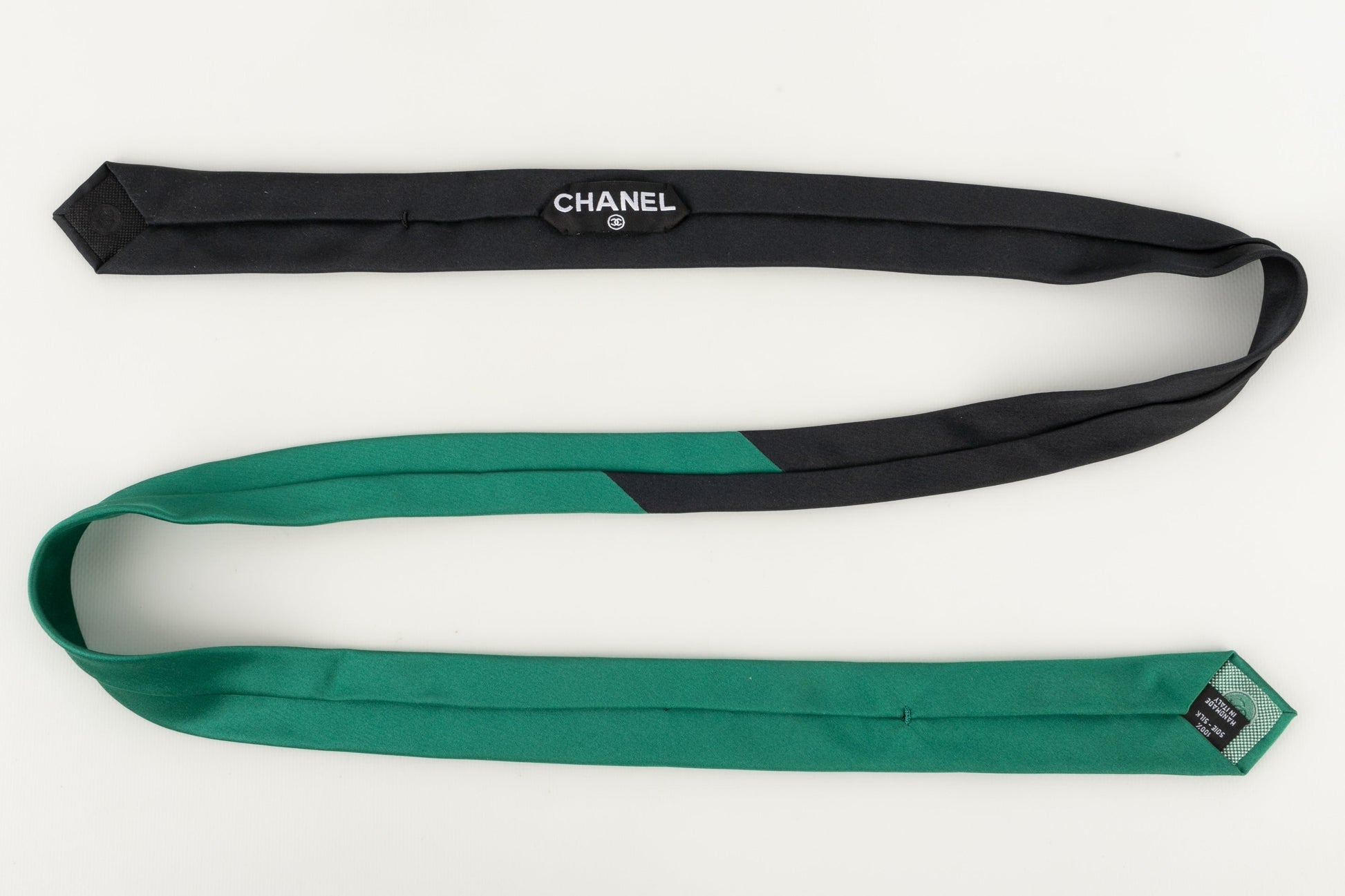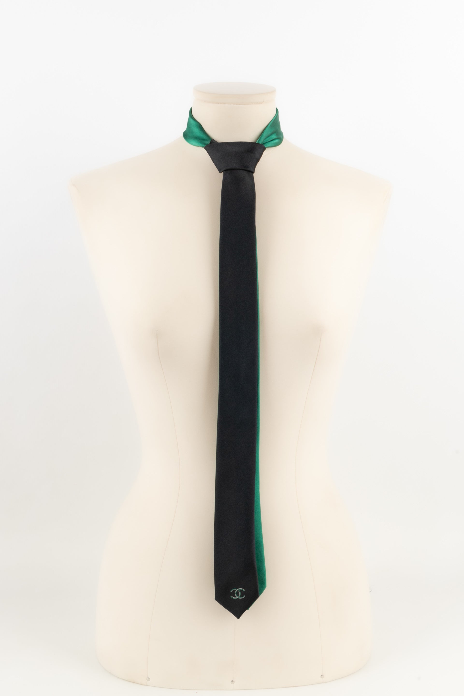 CHANEL - (Made in Italy) Cravate bicolore en soie.