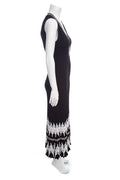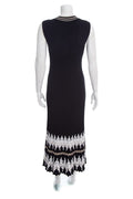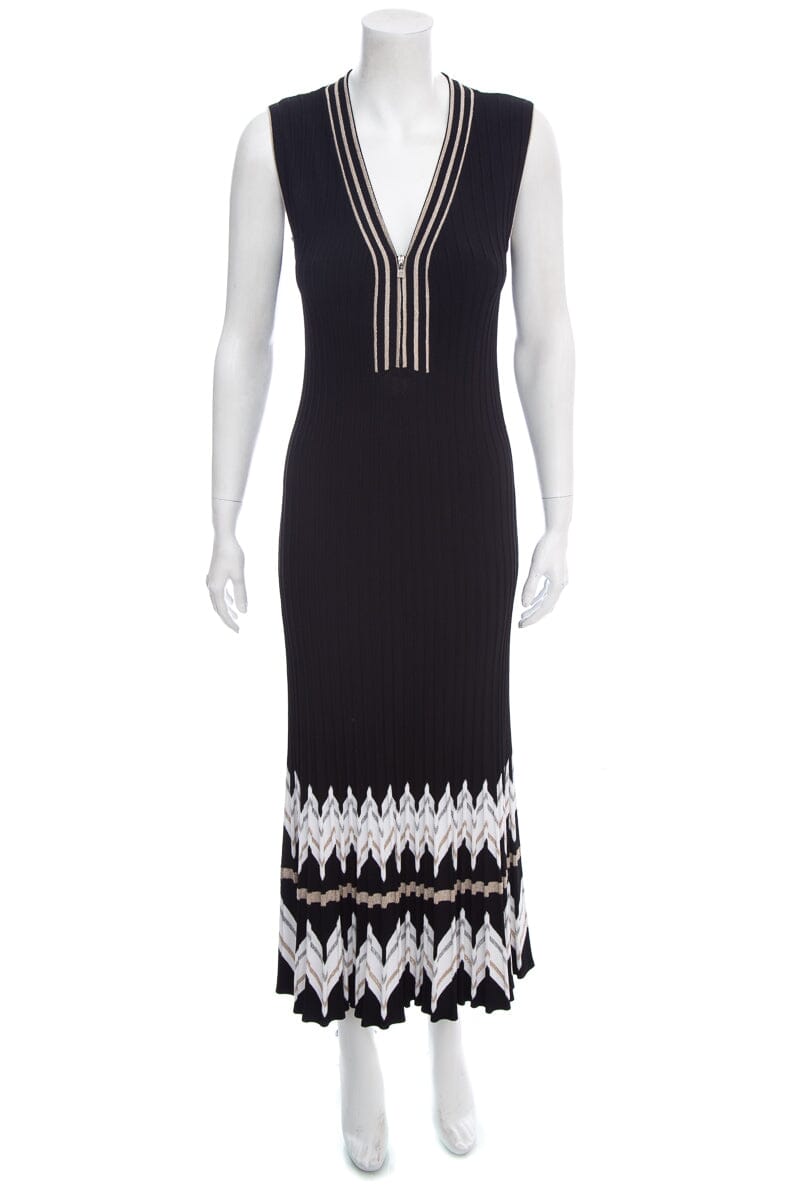 D. Exterior Knit Sleeveless V Neck Dress with Silver Gold Metallic Design. This item is in good condition; loose brand tag.