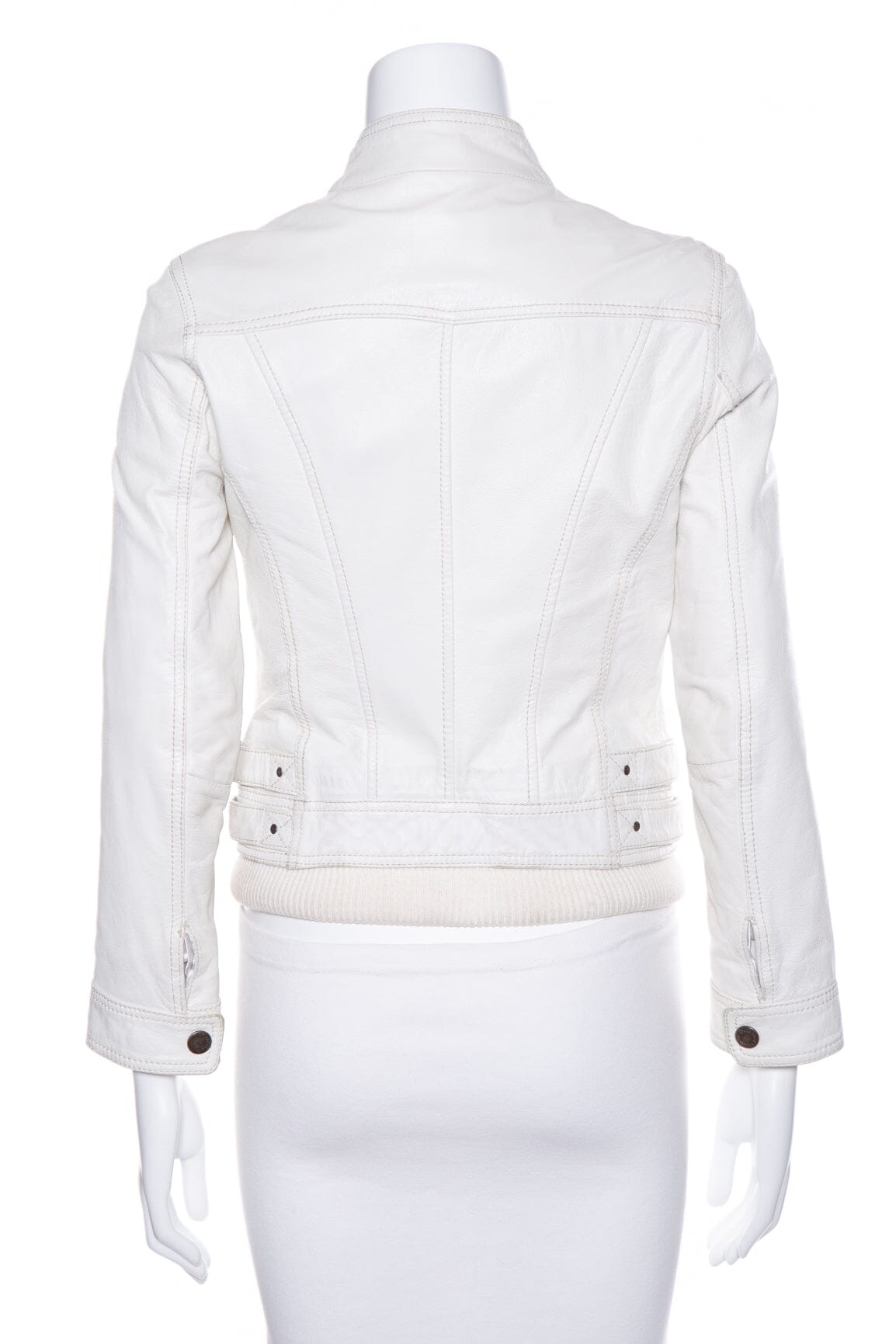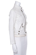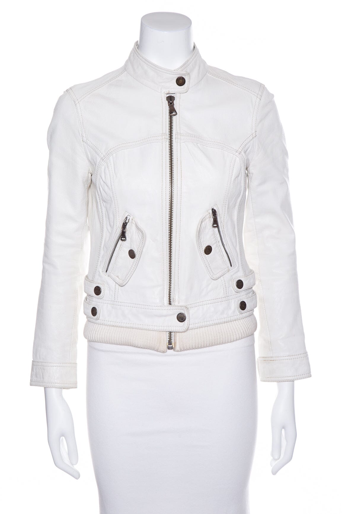 D&G White Leather Zip Up Jacket. This item is in good condition; some discoloration on lining.