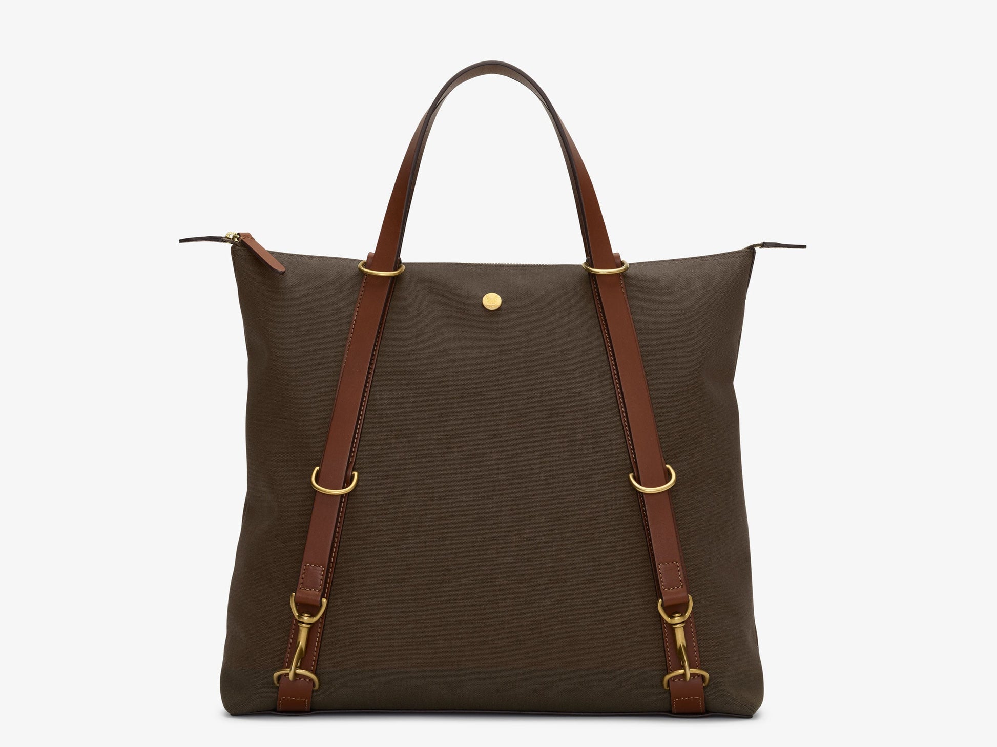 From a basic principle of two separate leather straps with a snap hook in each end and six neatly attached D-rings on each side, which the leather straps can slide through, the DayPack invites endless uses and carrying methods. Handheld, shoulder-hung or worn as a regular backpack, this bag can be adjusted to fit every need.