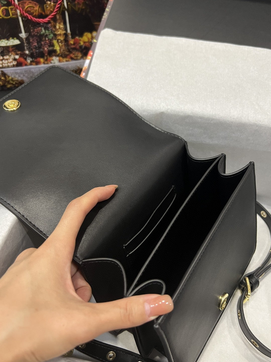 Double bellow compartmtlmt on the interior and two card slots