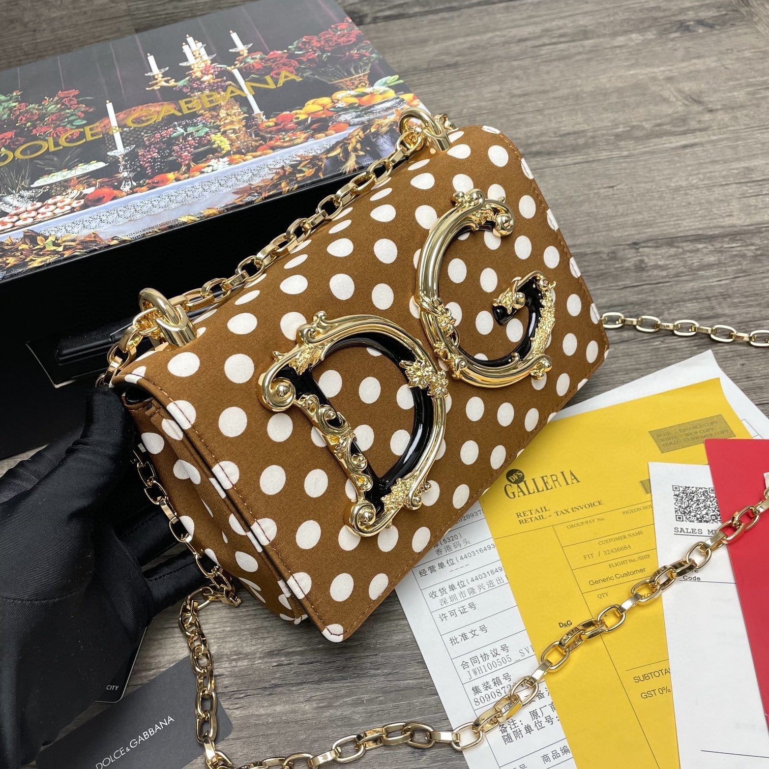 DG DG Girls CrossBody Bag With Polka Dots Brown For Women 8.3in/21cm DG
