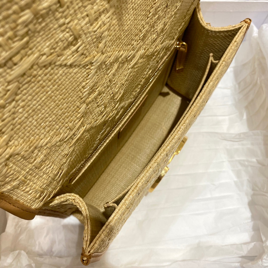 DI 30 Montaigne Bag Natural Cannage Raffia, Brown Handbags, Shoulder Bags, Crossbody Bags, 24cm CD M9203UMBE_M925