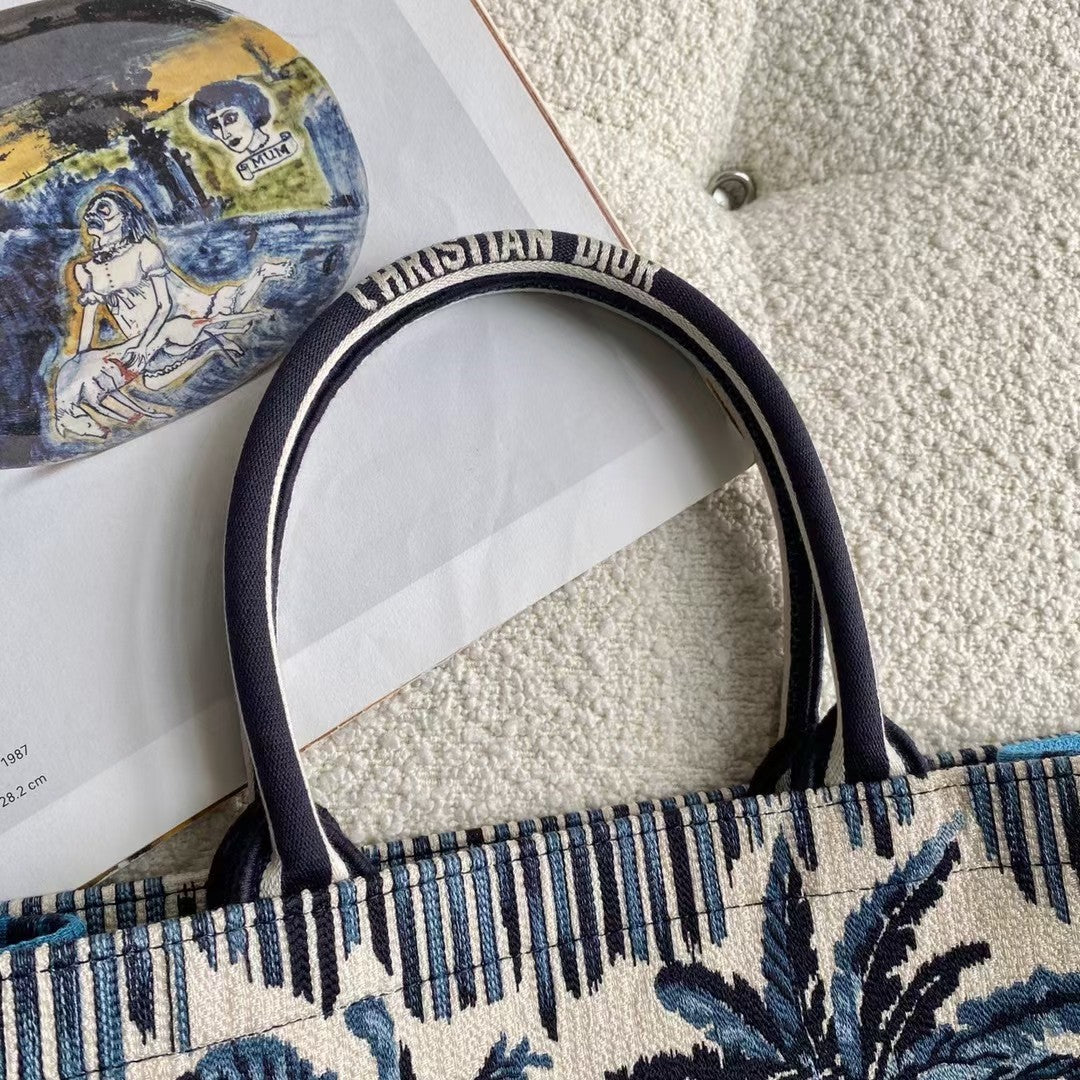 Introduced by Maria Grazia Chiuri, Creative Director of CHRSTN DR, the DYOR Book Tote has become a staple of the DYOR aesthetic. Designed to hold all the daily esstlmtials, the style is fully embroidered with a hallmark flowers embroidery DYOR Oblique motif.