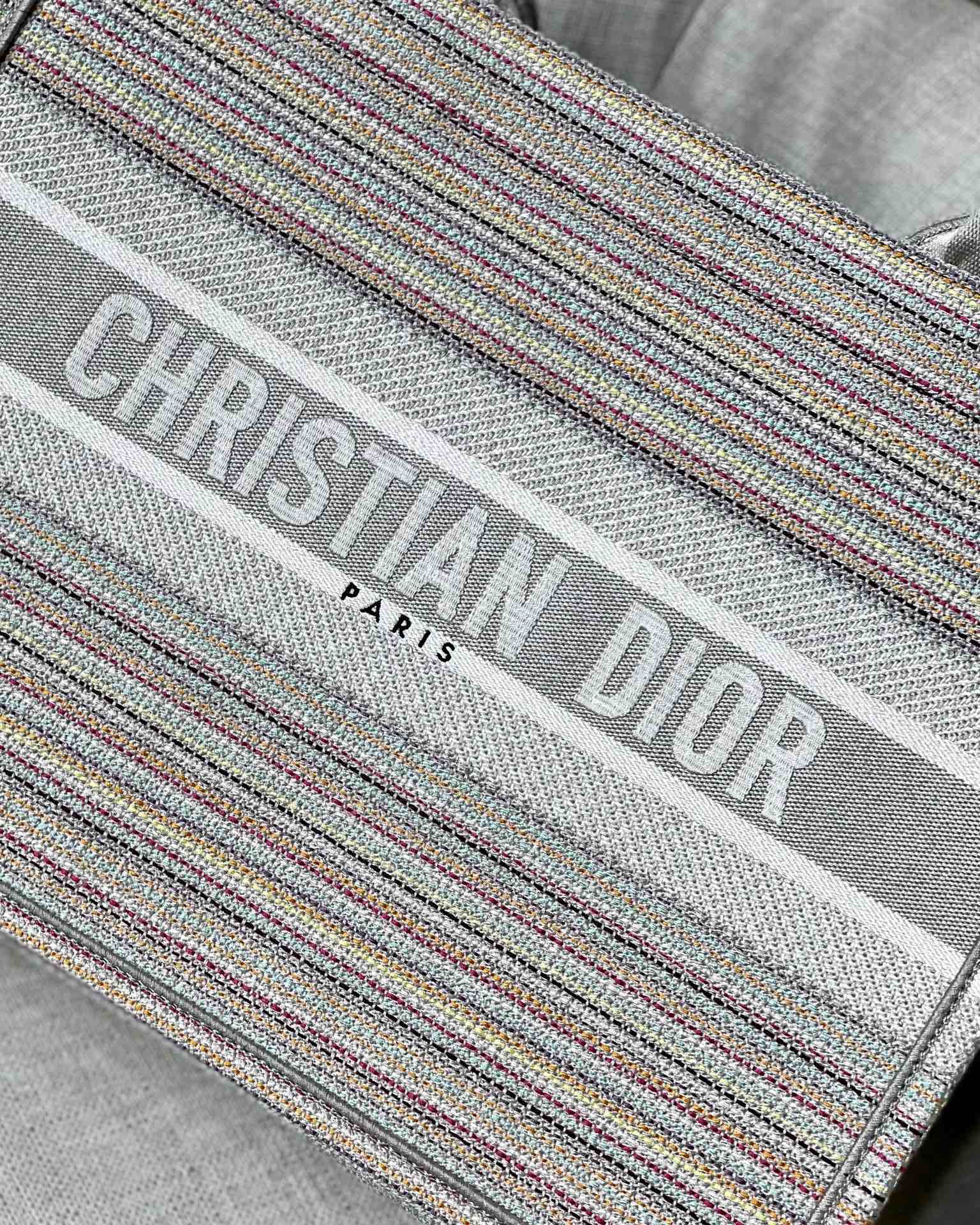 CHRSTN DR Large DYOR Book Tote Bag Canvas Stripes Embroidery For Women 42cm/16.5in CD