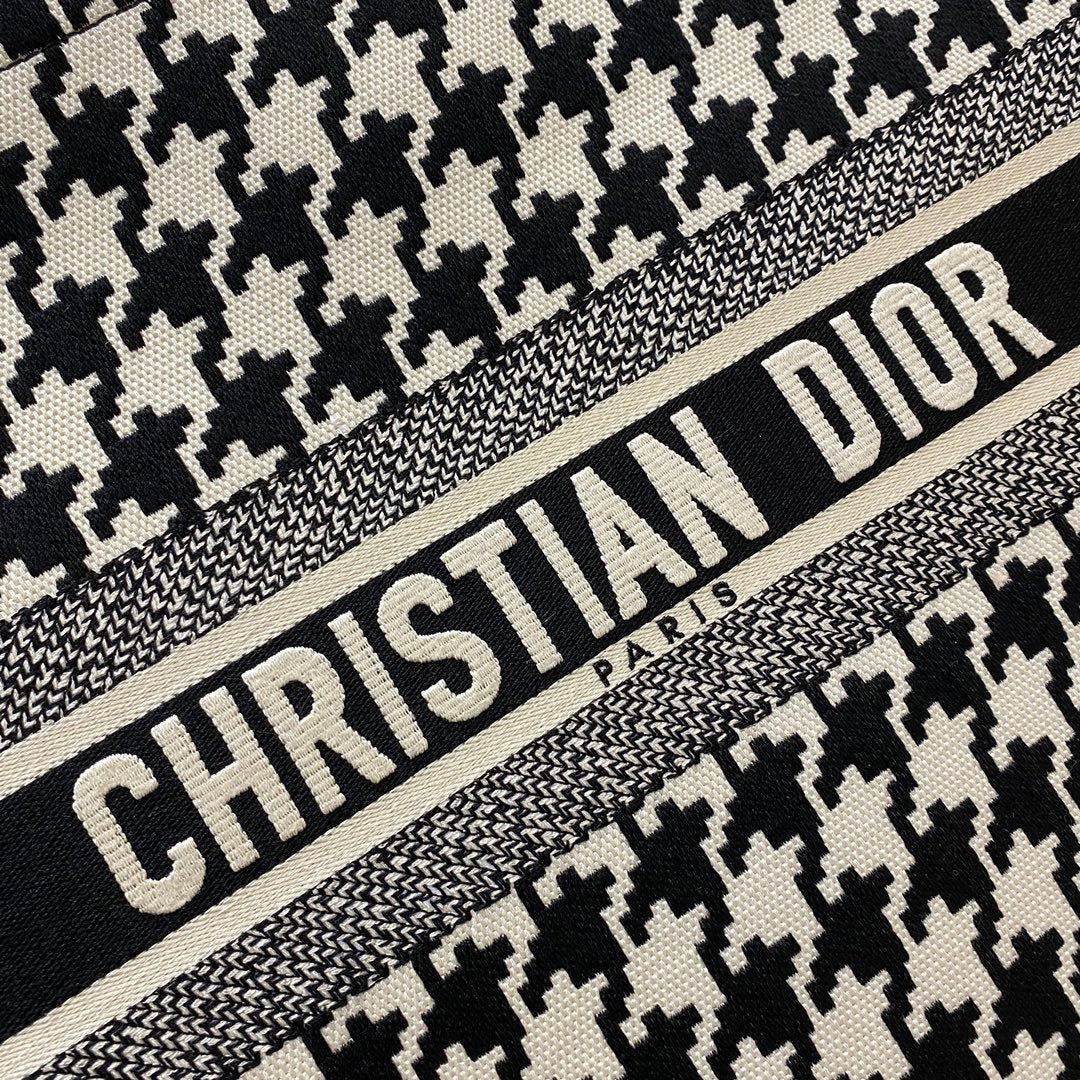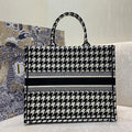 CHRSTN DR Large DYOR Book Tote Black Houndstooth Embroidery, Black/White, For Womtlm Womtlm’s Handbags, Shoulder Bags, 42cm CD