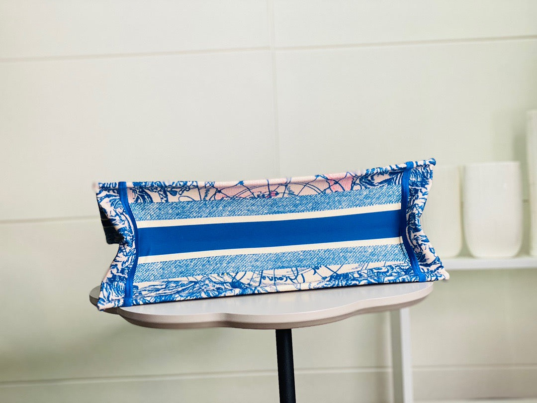 Introduced by Maria Grazia Chiuri, Creative Director of CHRSTN DR, the DYOR Book Tote has become a staple of the DYOR aesthetic. Designed to hold all the daily esstlmtials, the style is fully embroidered with a hallmark blue DYOR Oblique motif. Adorned with the ‘CHRSTN DR PARIS’ signature on the front, the large tote exemplifies the House’s signature savoir-faire and may be carried by hand or worn over the shoulder.