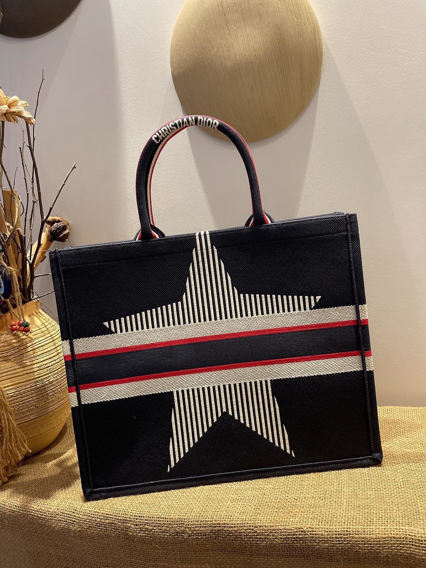 CHRSTN DR Large DYOR Book Tote Blue Three-Tone Embroidery, Blue, For Women Women’s Handbags, Shoulder Bags, 42cm CD M1286ZRSE_M928
