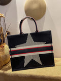 CHRSTN DR Large DYOR Book Tote Blue Three-Tone Embroidery, Blue, For Womtlm Womtlm’s Handbags, Shoulder Bags, 42cm CD M1286ZRSE_M928