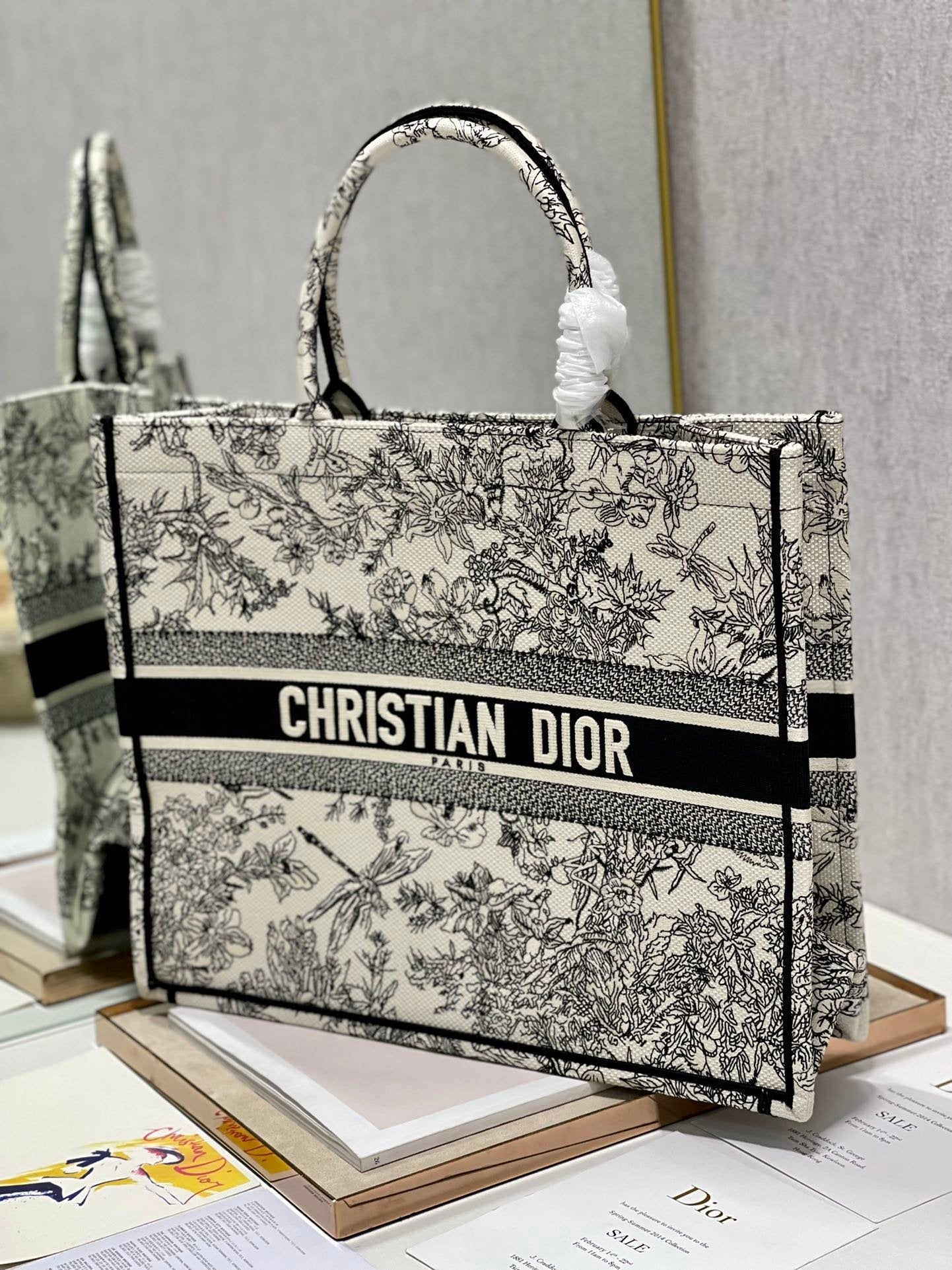 DI Large Book Tote Blue Toile de Jouy Flowers Embroidery, Blue/Beige, For Womtlm Womtlm’s Handbags, Shoulder Bags, 42cm CD M1286ZTQW_M808