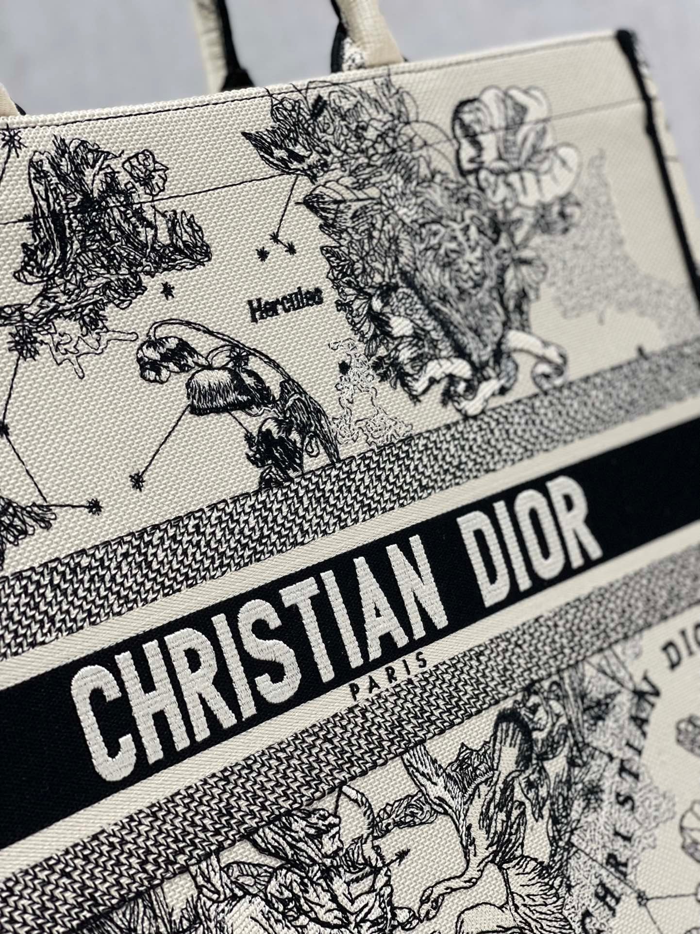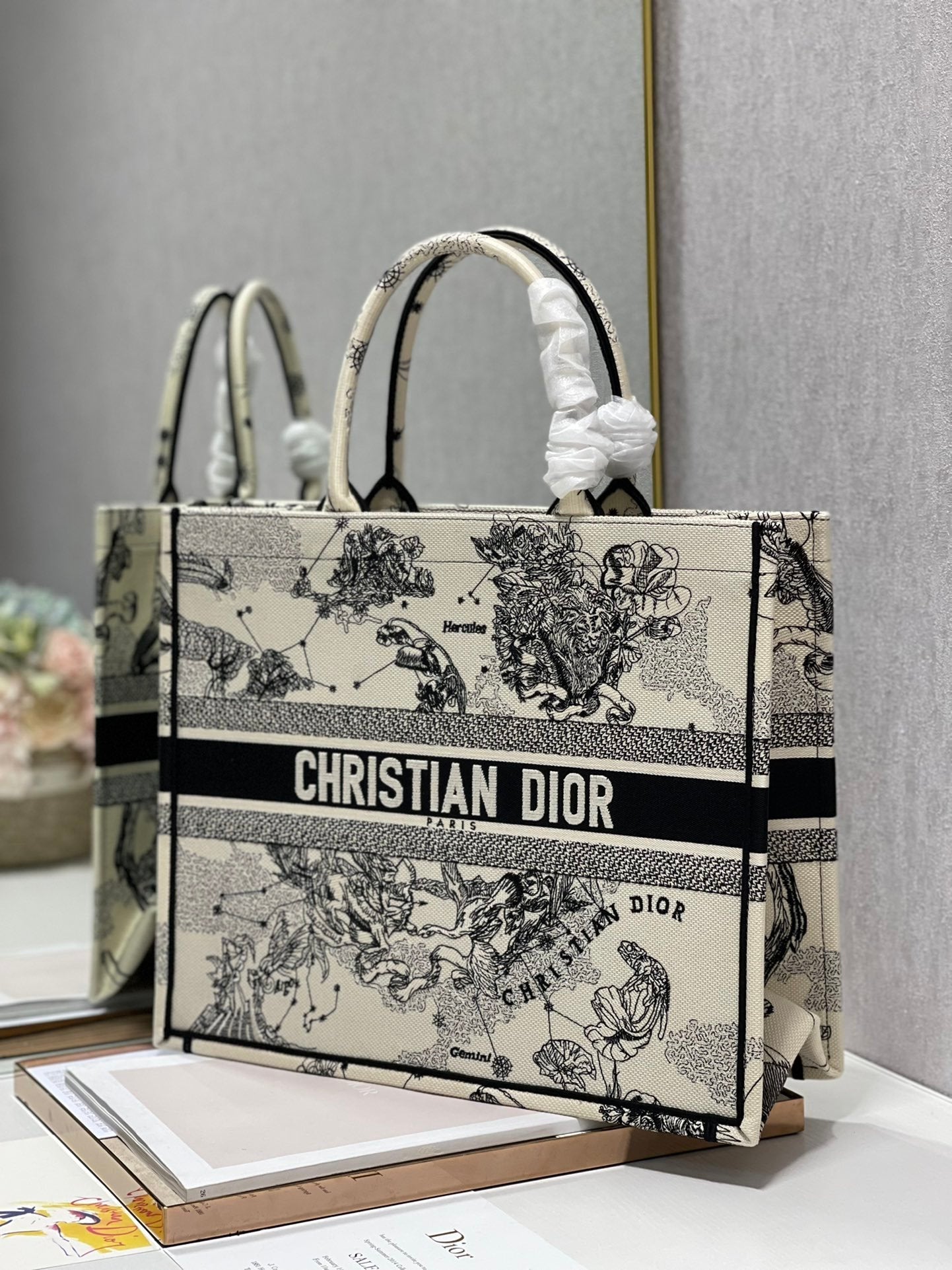 CHRSTN DR Large DYOR Book Tote DYOR Zodiac Embroidery, Black/Beige, For Womtlm Womtlm’s Handbags, 41cm CD