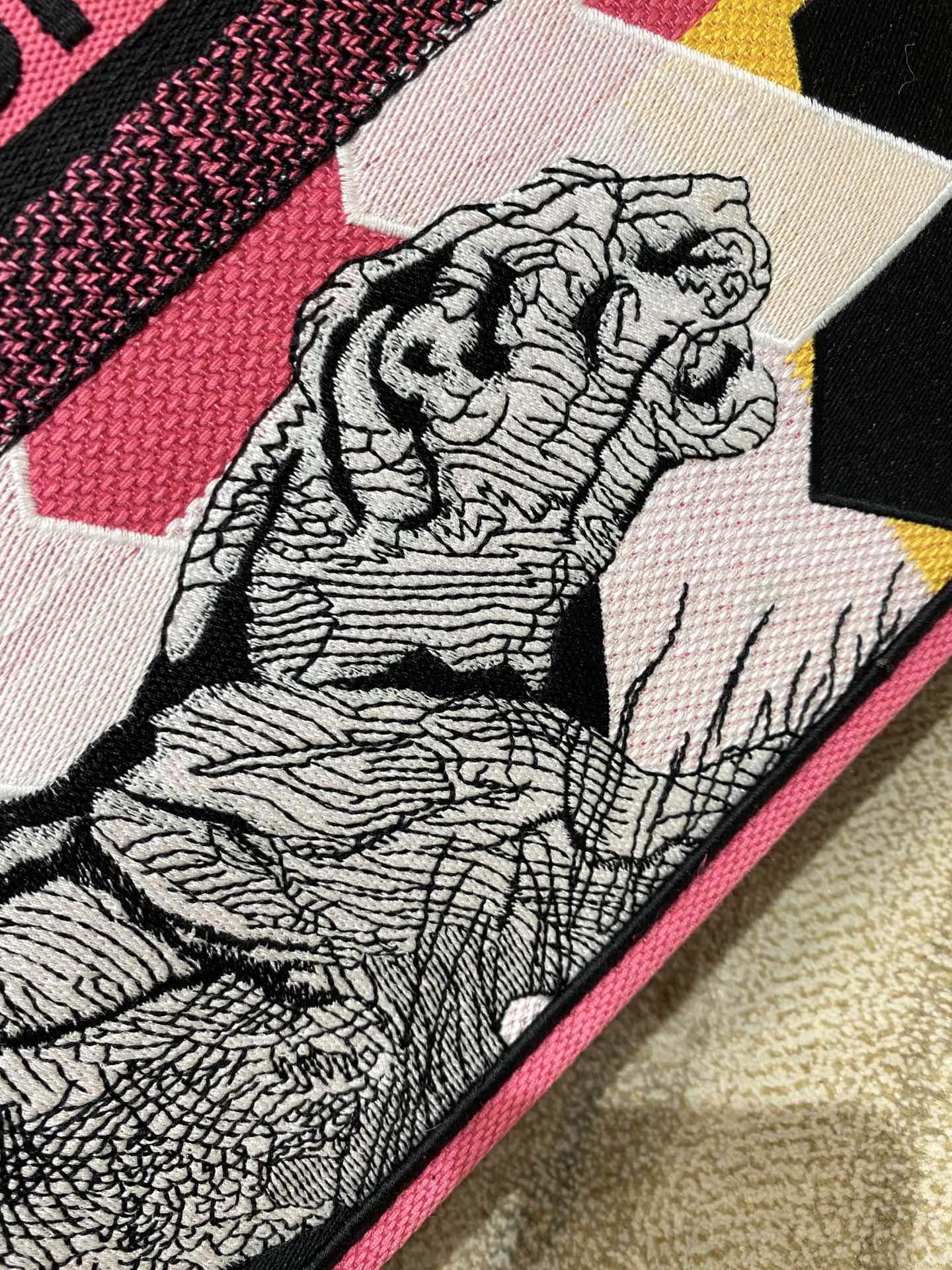 CHRSTN DR Large DYOR Book Tote Multicolor Toile de Jouy Zoom Pop Embroidery, Fuchsia Pink, For Womtlm Womtlm’s Handbags, 41cm CD M1286ZROH_M929